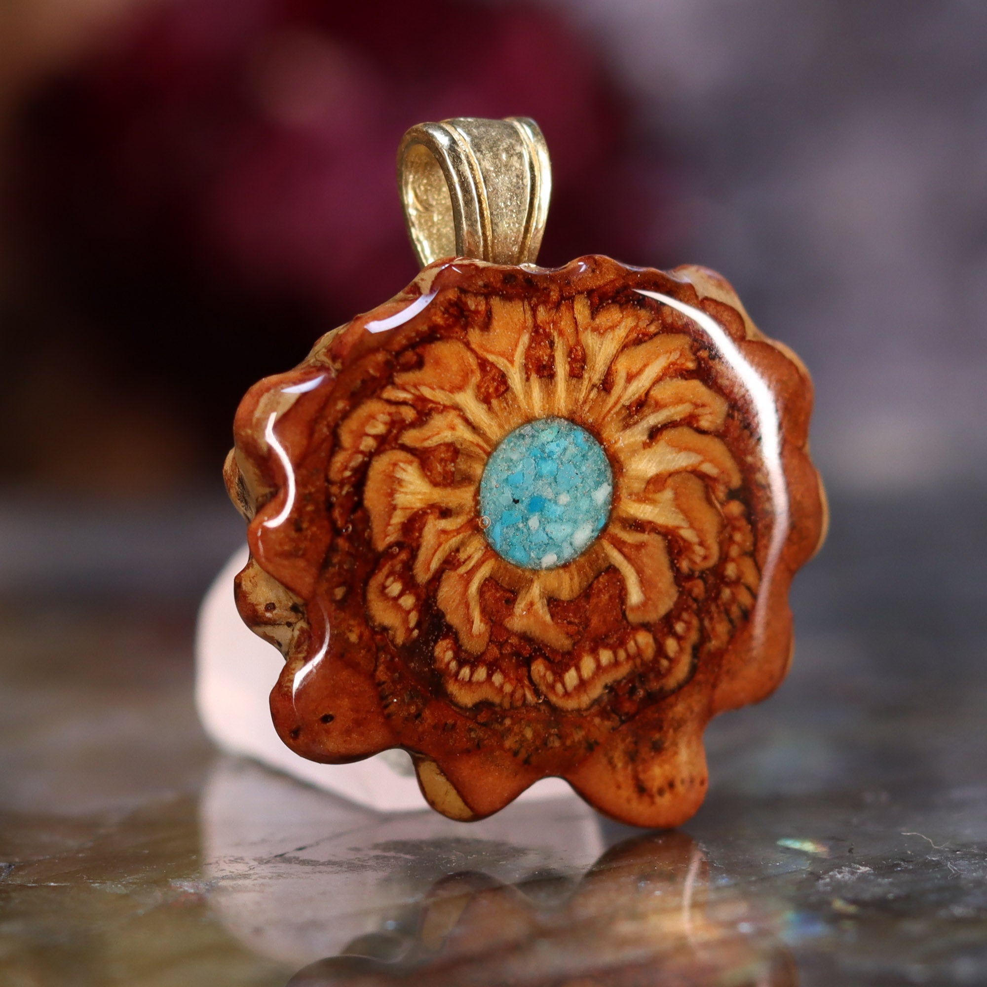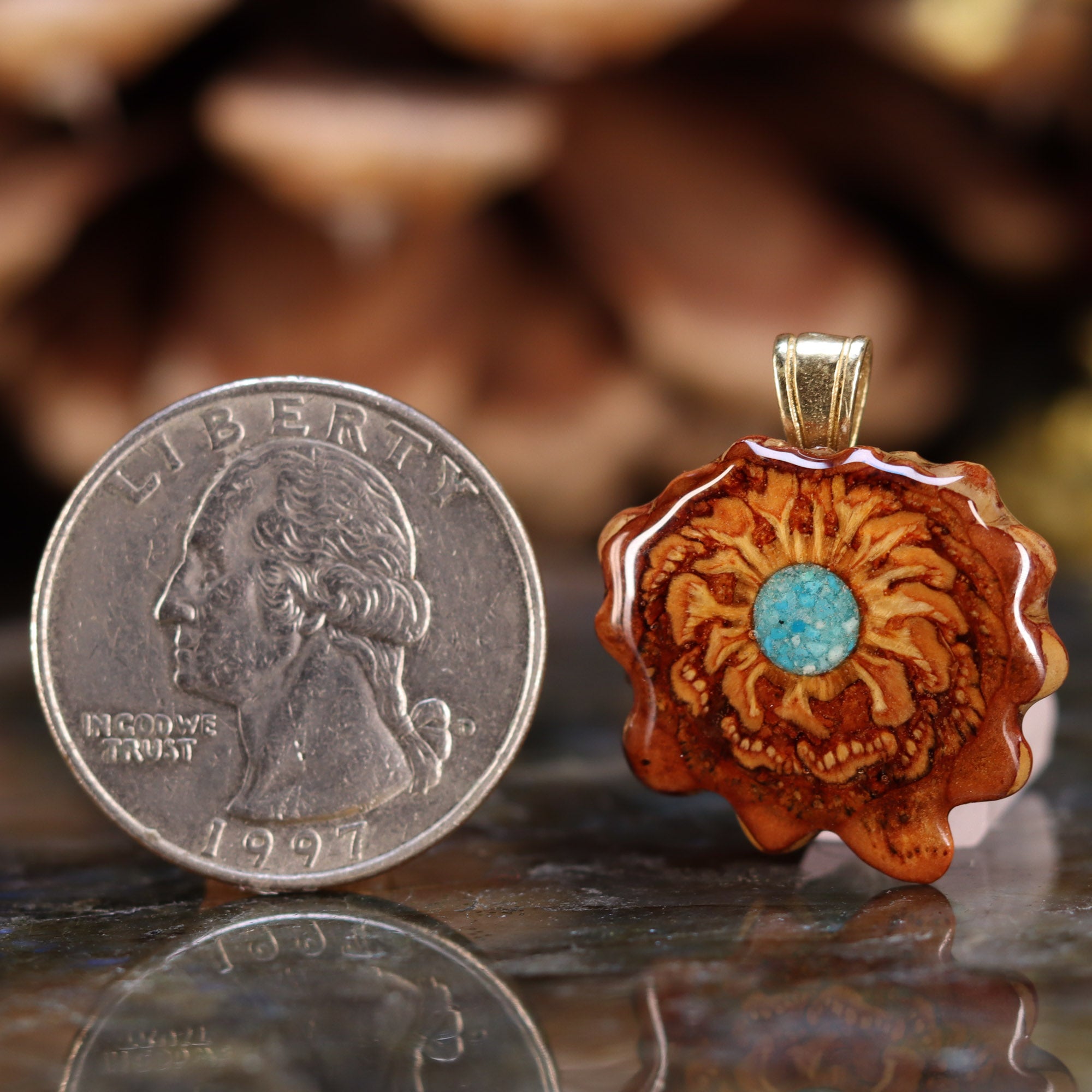 Every pinecone pendant is an elegant gift from Mother Nature -- unveiling the ornate Sacred Geometry hidden at the center of one of the world's densest Pinecones. Because only one cross-section is taken from the "heart" of each Cone, every pendant is absolutely unique, and truly one-of-a-kind.