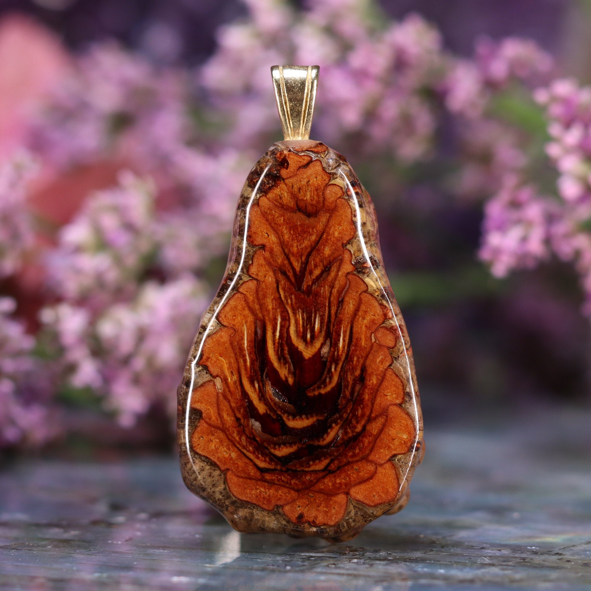 Our *new* Teardrop-style pendants reveal an elegant, angular pattern, only visible within the diagonal cross-section of specifically-shaped Pinecones. Due to the beautiful, diverse patterns displayed on both the front and back of these unique pendants, we’ve photographed both sides of these truly “reversible” new designs!