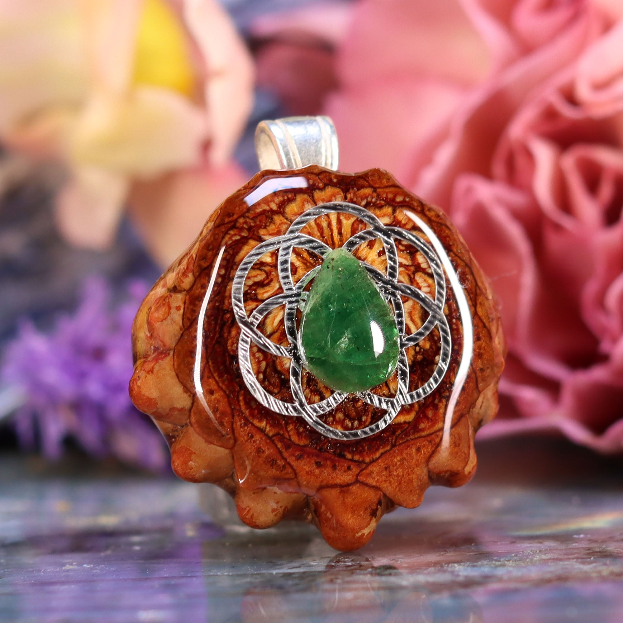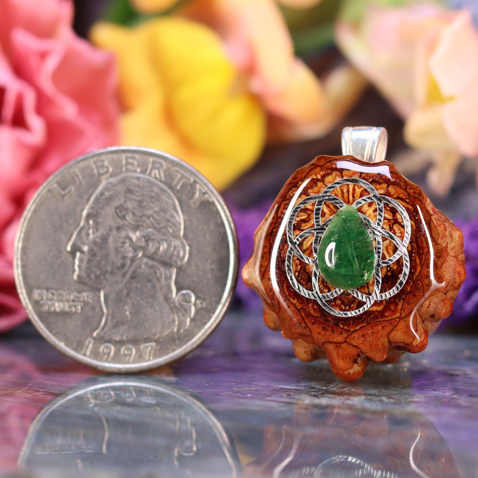 Every pinecone pendant is an elegant gift from Mother Nature -- unveiling the ornate Sacred Geometry hidden at the center of one of the world's densest Pinecones. Because only one cross-section is taken from the "heart" of each Cone, every pendant is absolutely unique, and truly one-of-a-kind.