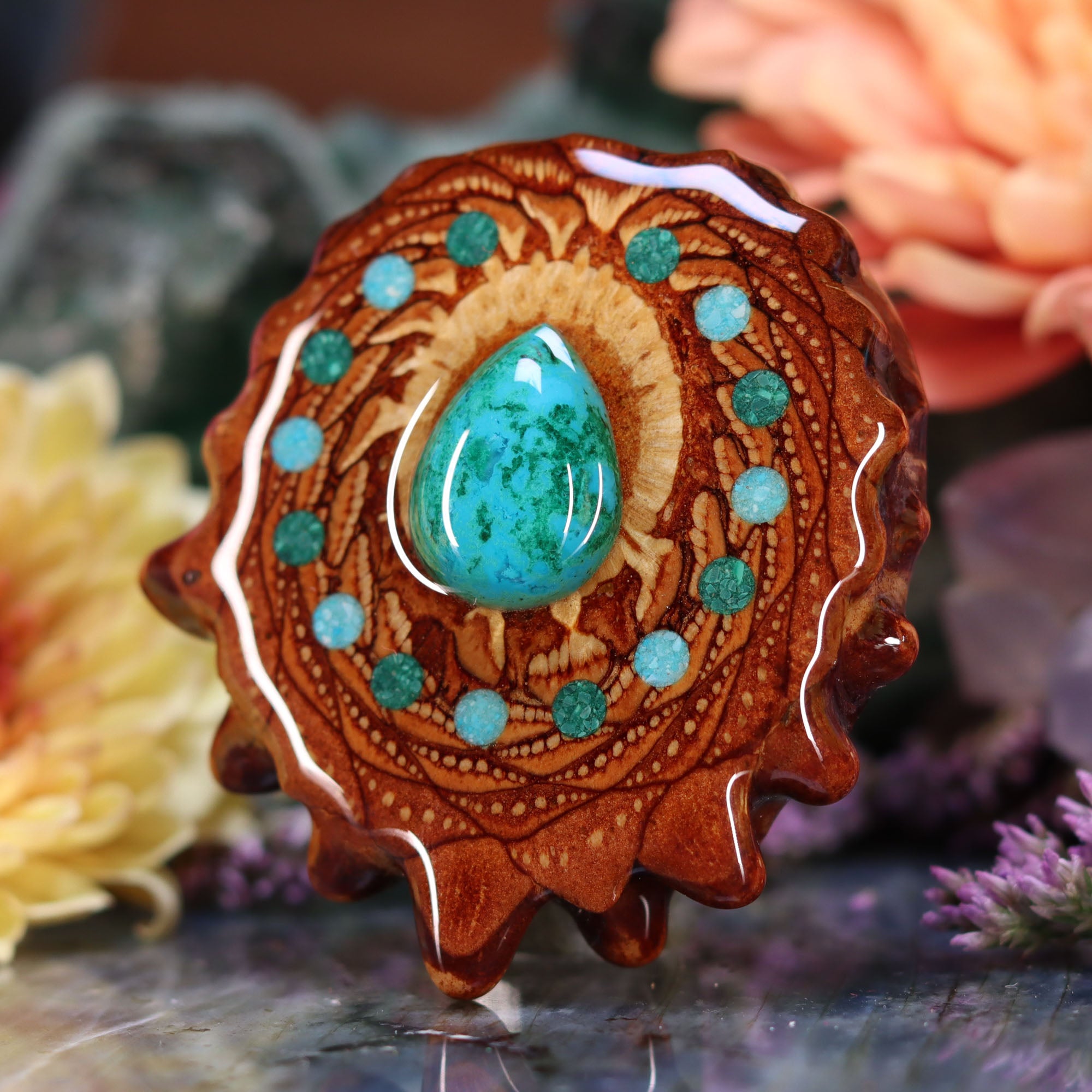 Every pinecone pendant is an elegant gift from Mother Nature -- unveiling the ornate Sacred Geometry hidden at the center of one of the world's densest Pinecones. Because only one cross-section is taken from the "heart" of each Cone, every pendant is absolutely unique, and truly one-of-a-kind.