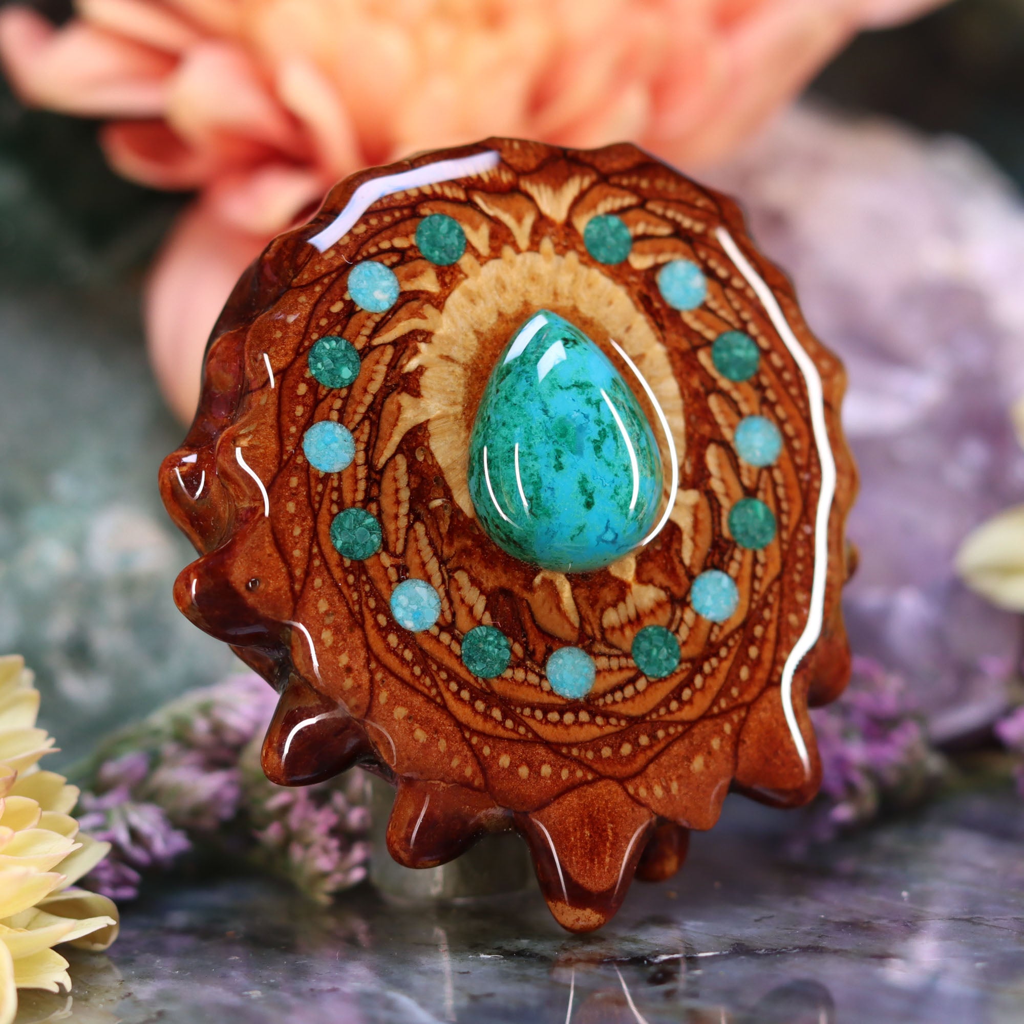 Known as a stone of peace and wisdom, Chrysocolla is a gentle and harmonious stone, and can be used as a tool of cleansing and purfication. Acting strongly at the solar plexus chakra, Chrysocolla is known to help reprogram destructive emotional patterns, which can increase personal power and facilitate stability in relationships. It has also been traditionally used by Native American cultures to clear emotional turmoil as well as to strengthen the body’s resistance to toxins.
