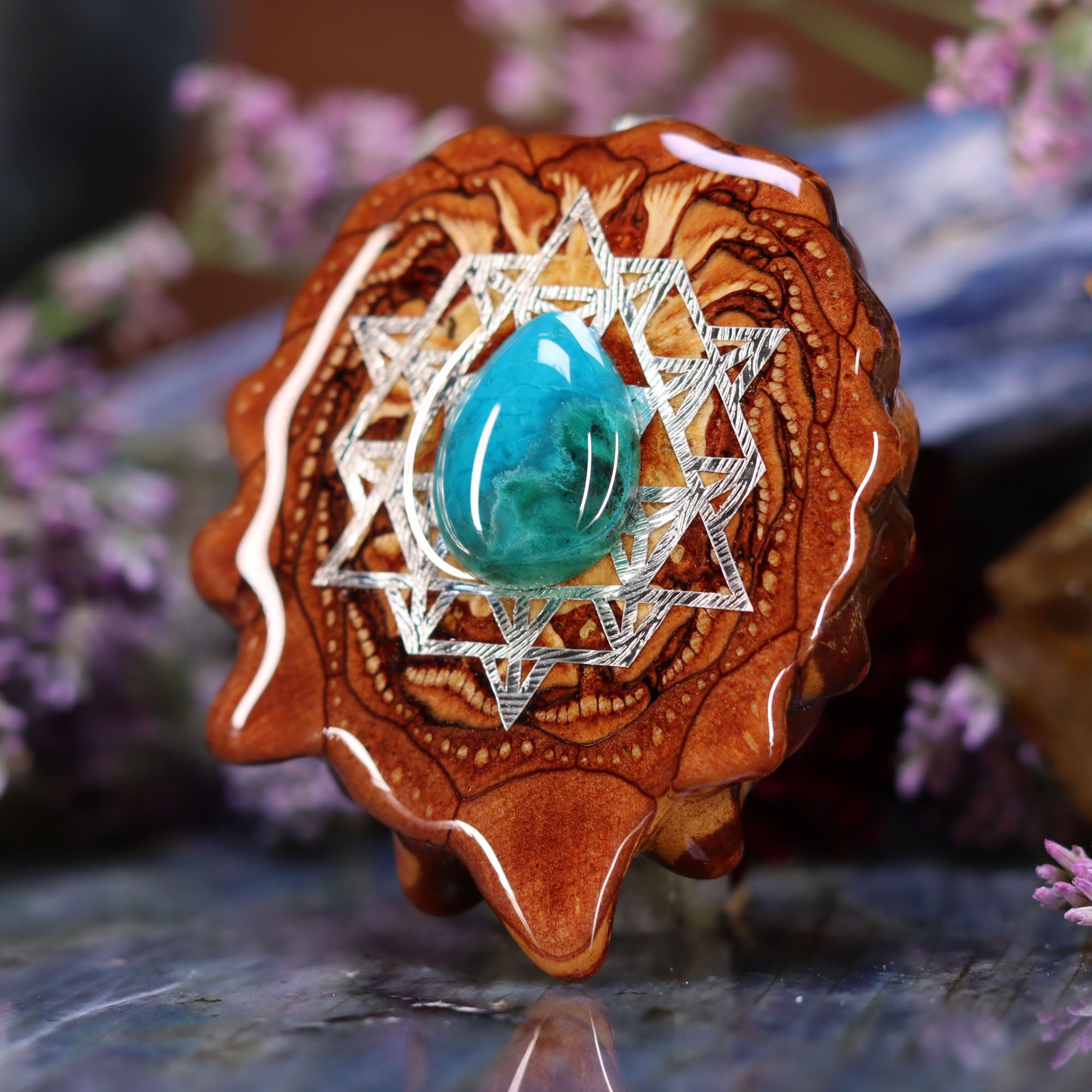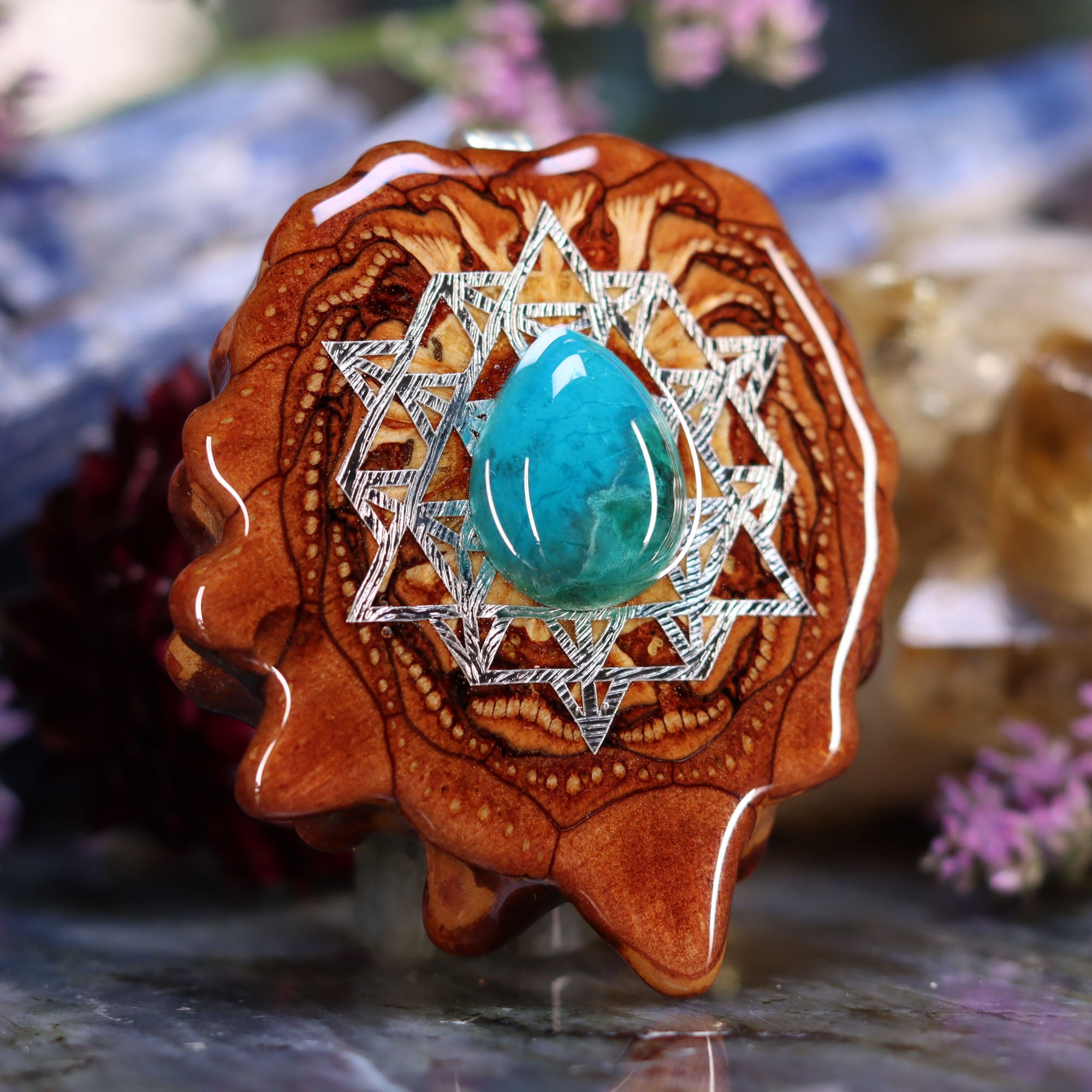 Every pinecone pendant is an elegant gift from Mother Nature -- unveiling the ornate Sacred Geometry hidden at the center of one of the world's densest Pinecones. Because only one cross-section is taken from the "heart" of each Cone, every pendant is absolutely unique, and truly one-of-a-kind.