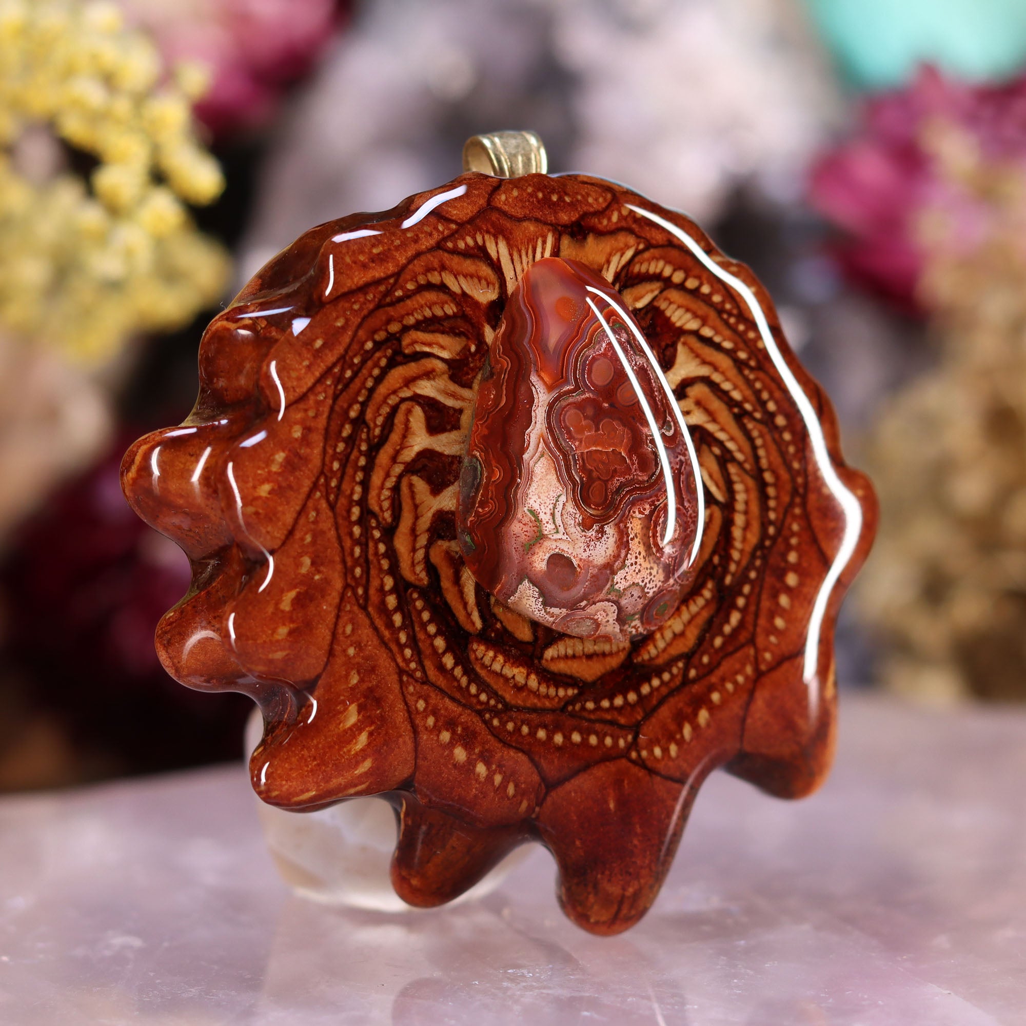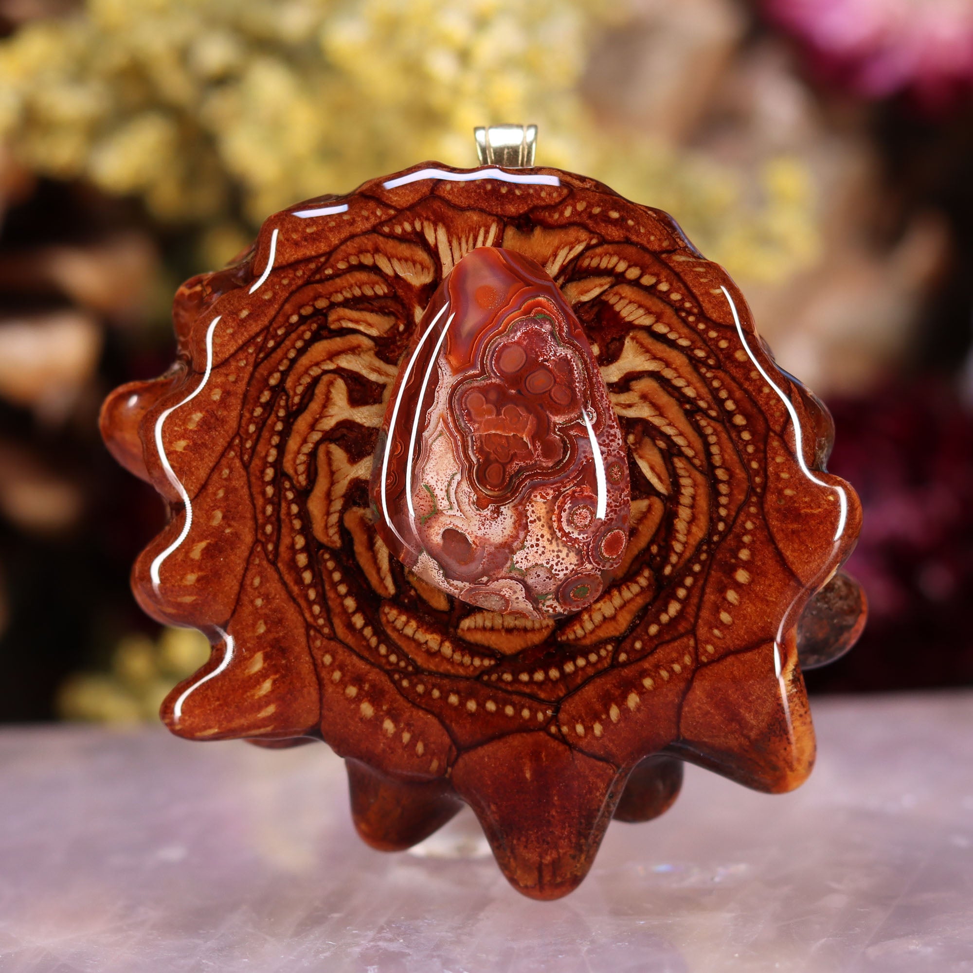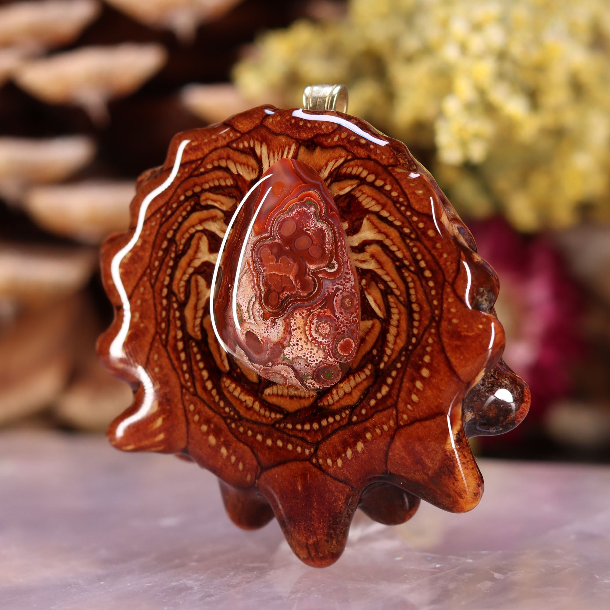 Every pinecone pendant is an elegant gift from Mother Nature -- unveiling the ornate Sacred Geometry hidden at the center of one of the world's densest Pinecones. Because only one cross-section is taken from the "heart" of each Cone, every pendant is absolutely unique, and truly one-of-a-kind.