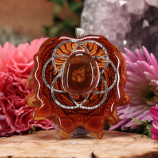 Every pinecone pendant is an elegant gift from Mother Nature -- unveiling the ornate Sacred Geometry hidden at the center of one of the world's densest Pinecones. Because only one cross-section is taken from the "heart" of each Cone, every pendant is absolutely unique, and truly one-of-a-kind.
