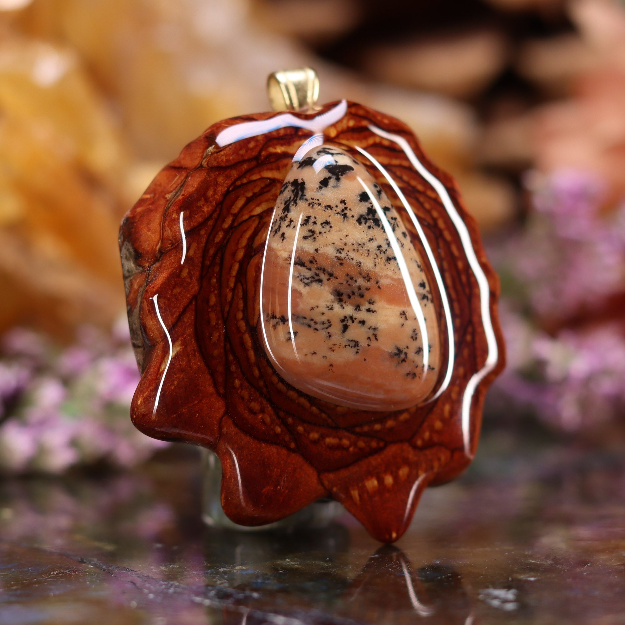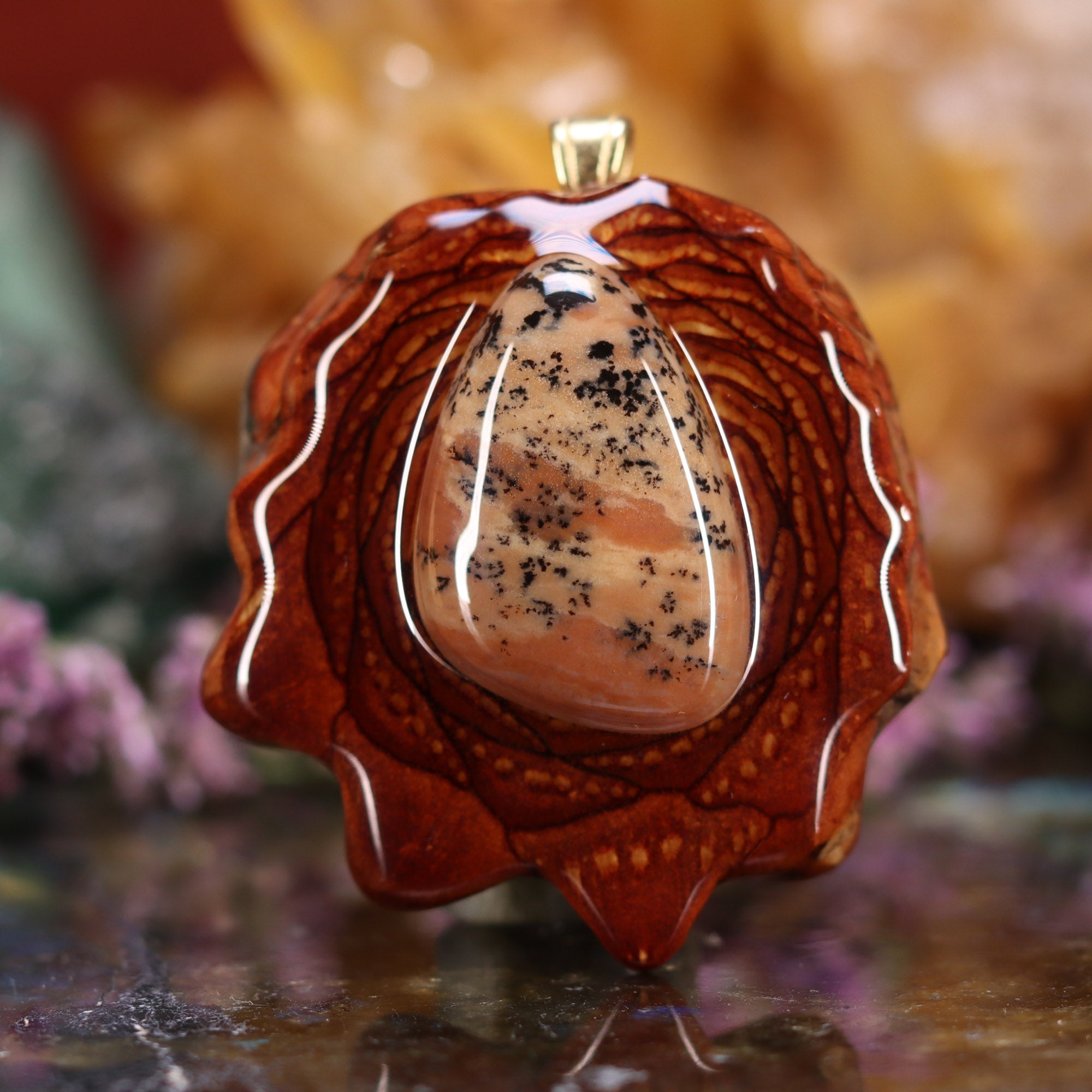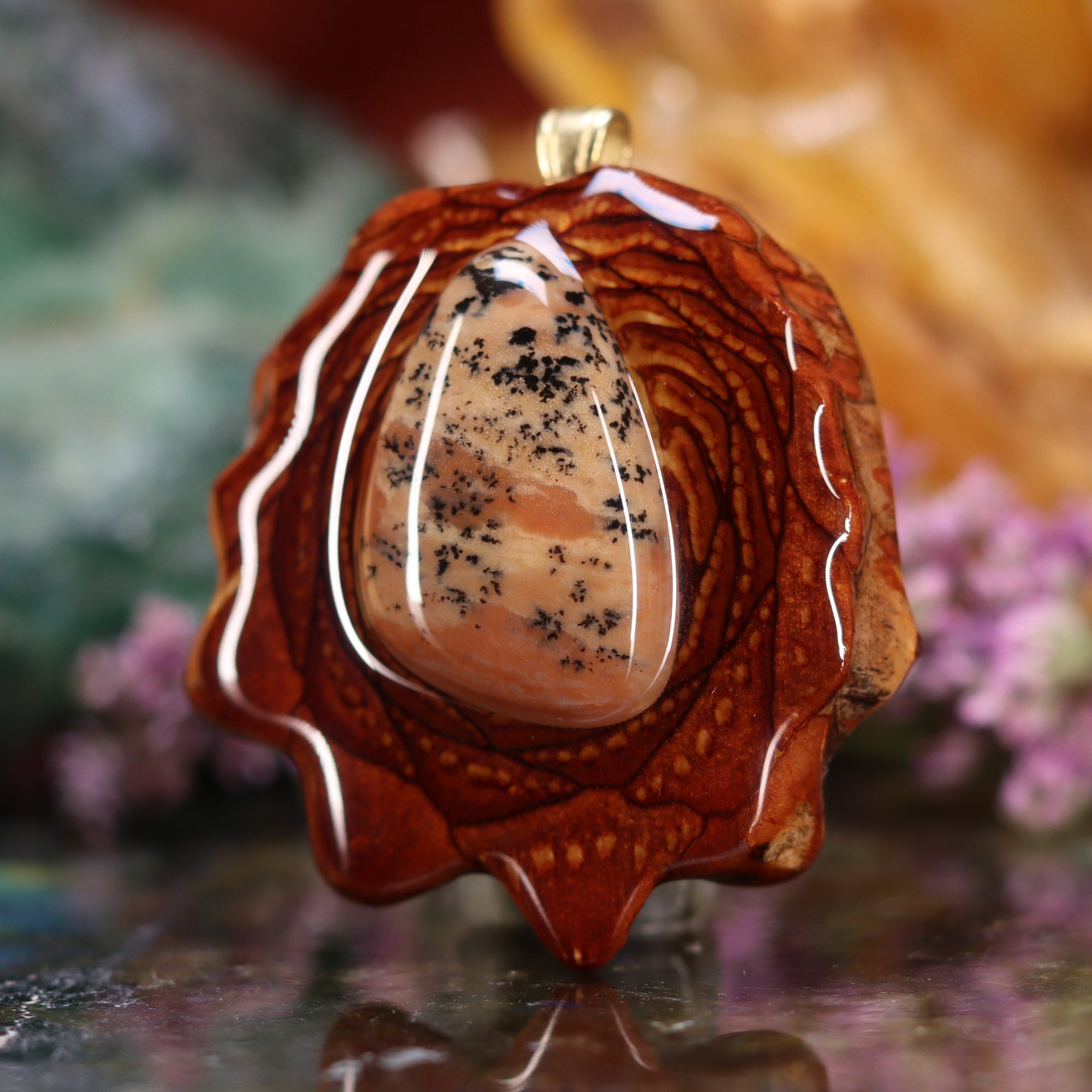 Every pinecone pendant is an elegant gift from Mother Nature -- unveiling the ornate Sacred Geometry hidden at the center of one of the world's densest Pinecones. Because only one cross-section is taken from the "heart" of each Cone, every pendant is absolutely unique, and truly one-of-a-kind.