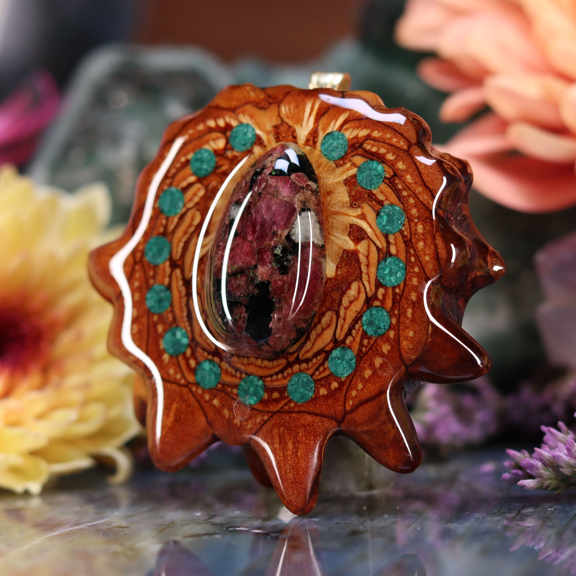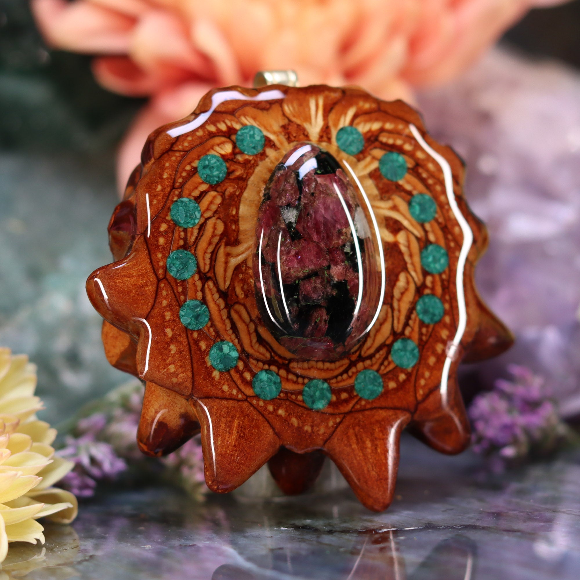 Every pinecone pendant is an elegant gift from Mother Nature -- unveiling the ornate Sacred Geometry hidden at the center of one of the world's densest Pinecones. Because only one cross-section is taken from the "heart" of each Cone, every pendant is absolutely unique, and truly one-of-a-kind.