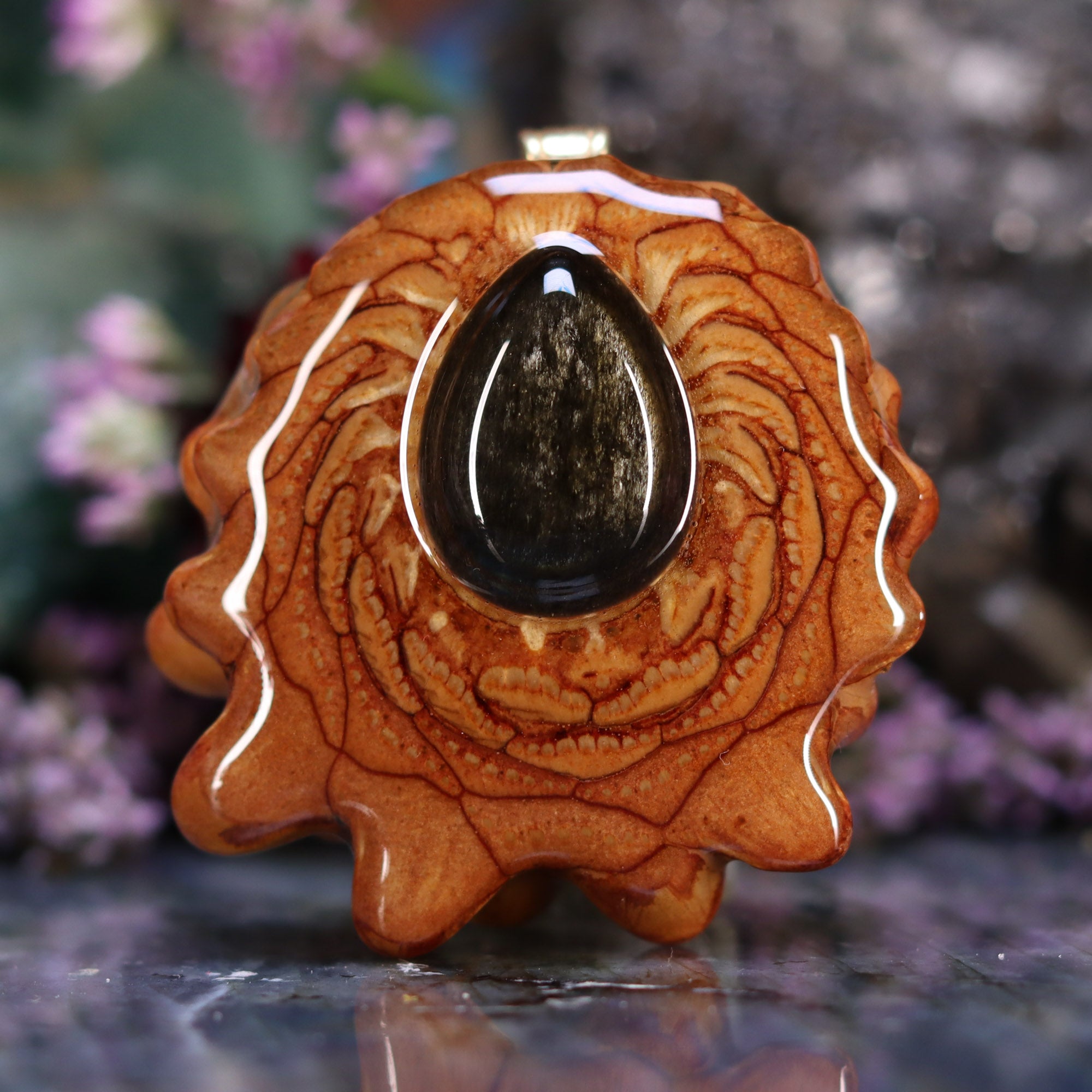 Every pinecone pendant is an elegant gift from Mother Nature -- unveiling the ornate Sacred Geometry hidden at the center of one of the world's densest Pinecones. Because only one cross-section is taken from the "heart" of each Cone, every pendant is absolutely unique, and truly one-of-a-kind.