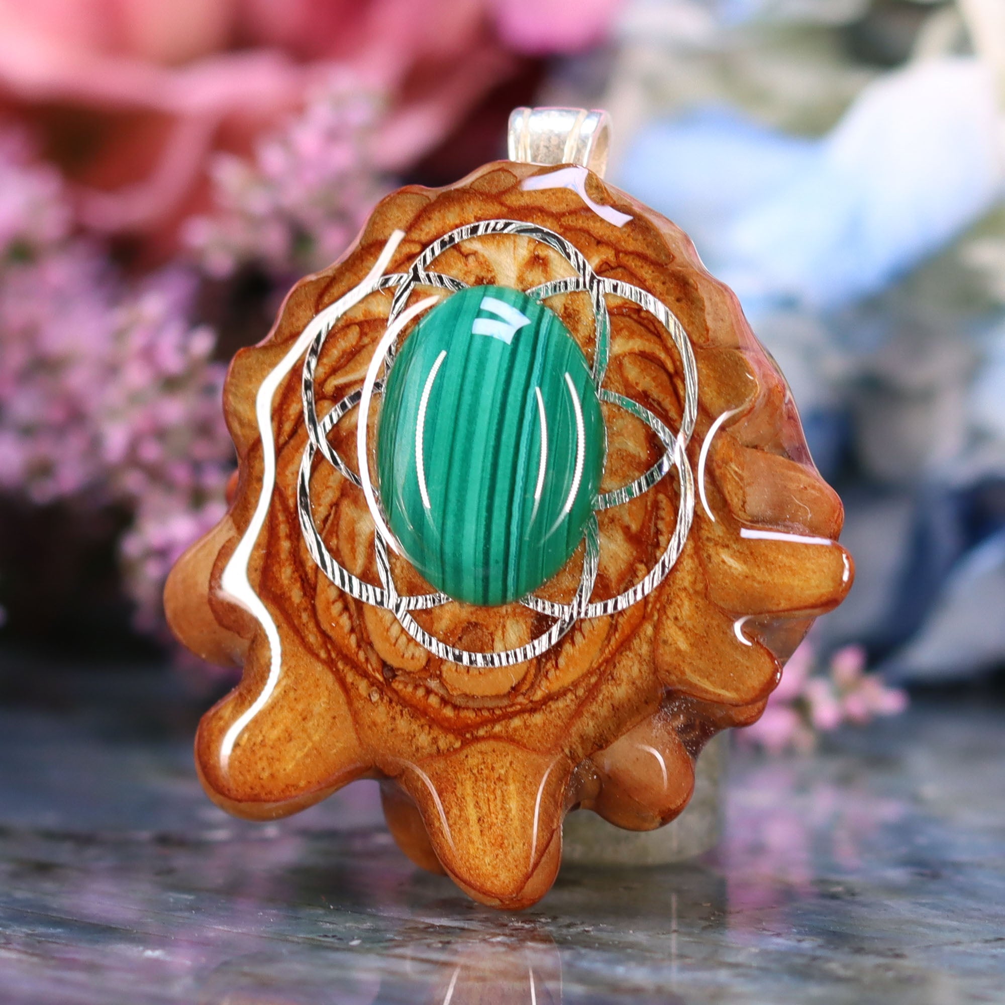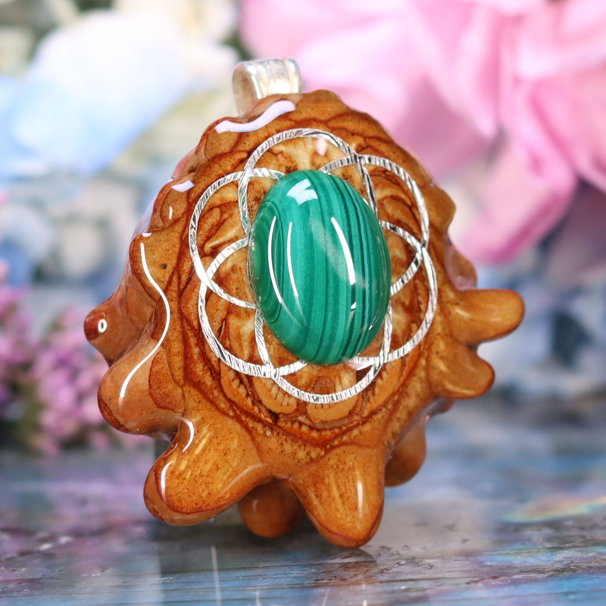 Every pinecone pendant is an elegant gift from Mother Nature -- unveiling the ornate Sacred Geometry hidden at the center of one of the world's densest Pinecones. Because only one cross-section is taken from the "heart" of each Cone, every pendant is absolutely unique, and truly one-of-a-kind.
