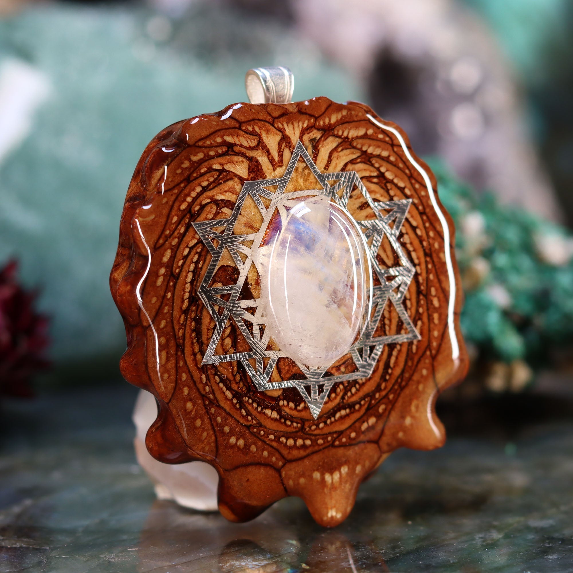 As its name suggests, Moonstone is strongly connected to the archetypal feminine energies of the moon, intuition, and empathy. It helps reconnect with the softness and wisdom of the great mother if one gets caught up in stress, fixation, or aggression. It is recognized as a powerful tool to make conscious the unconscious, and traditionally has been worn as a pendant to encourage the fruition of one's psychic gifts, as well as to facilitate lucid dreaming.