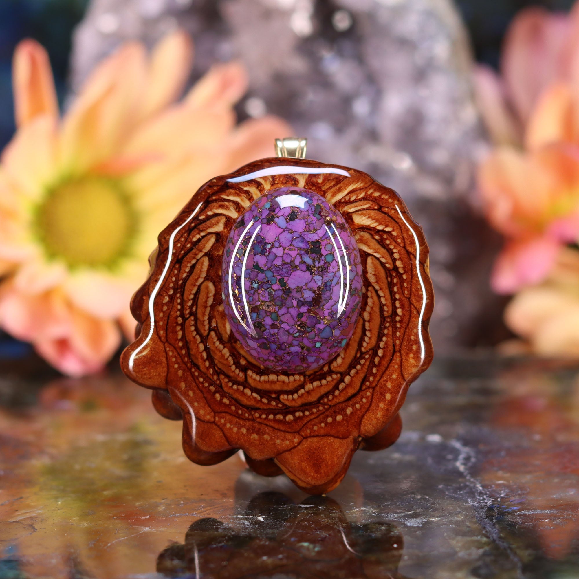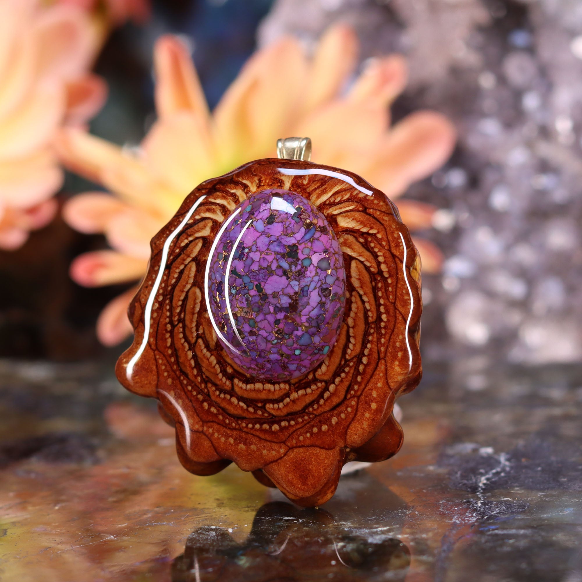 Every pinecone pendant is an elegant gift from Mother Nature -- unveiling the ornate Sacred Geometry hidden at the center of one of the world's densest Pinecones. Because only one cross-section is taken from the "heart" of each Cone, every pendant is absolutely unique, and truly one-of-a-kind.