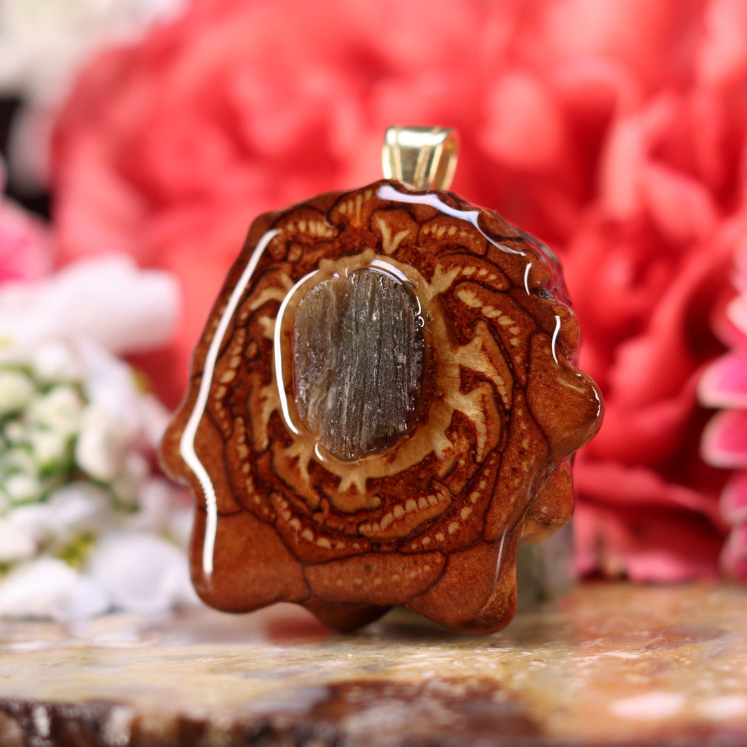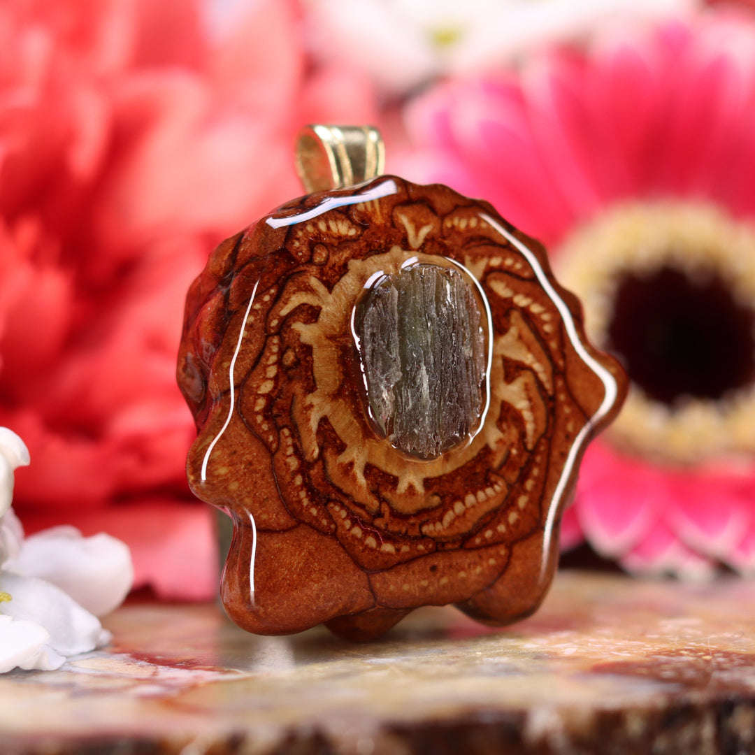 Every pinecone pendant is an elegant gift from Mother Nature -- unveiling the ornate Sacred Geometry hidden at the center of one of the world's densest Pinecones. Because only one cross-section is taken from the "heart" of each Cone, every pendant is absolutely unique, and truly one-of-a-kind.