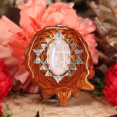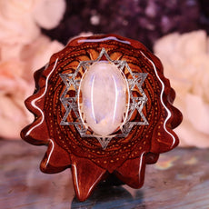 As its name suggests, Moonstone is strongly connected to the archetypal feminine energies of the moon, intuition, and empathy. It helps reconnect with the softness and wisdom of the great mother if one gets caught up in stress, fixation, or aggression. It is recognized as a powerful tool to make conscious the unconscious, and traditionally has been worn as a pendant to encourage the fruition of one's psychic gifts, as well as to facilitate lucid dreaming.