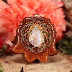 As its name suggests, Moonstone is strongly connected to the archetypal feminine energies of the moon, intuition, and empathy. It helps reconnect with the softness and wisdom of the great mother if one gets caught up in stress, fixation, or aggression. It is recognized as a powerful tool to make conscious the unconscious, and traditionally has been worn as a pendant to encourage the fruition of one's psychic gifts, as well as to facilitate lucid dreaming.