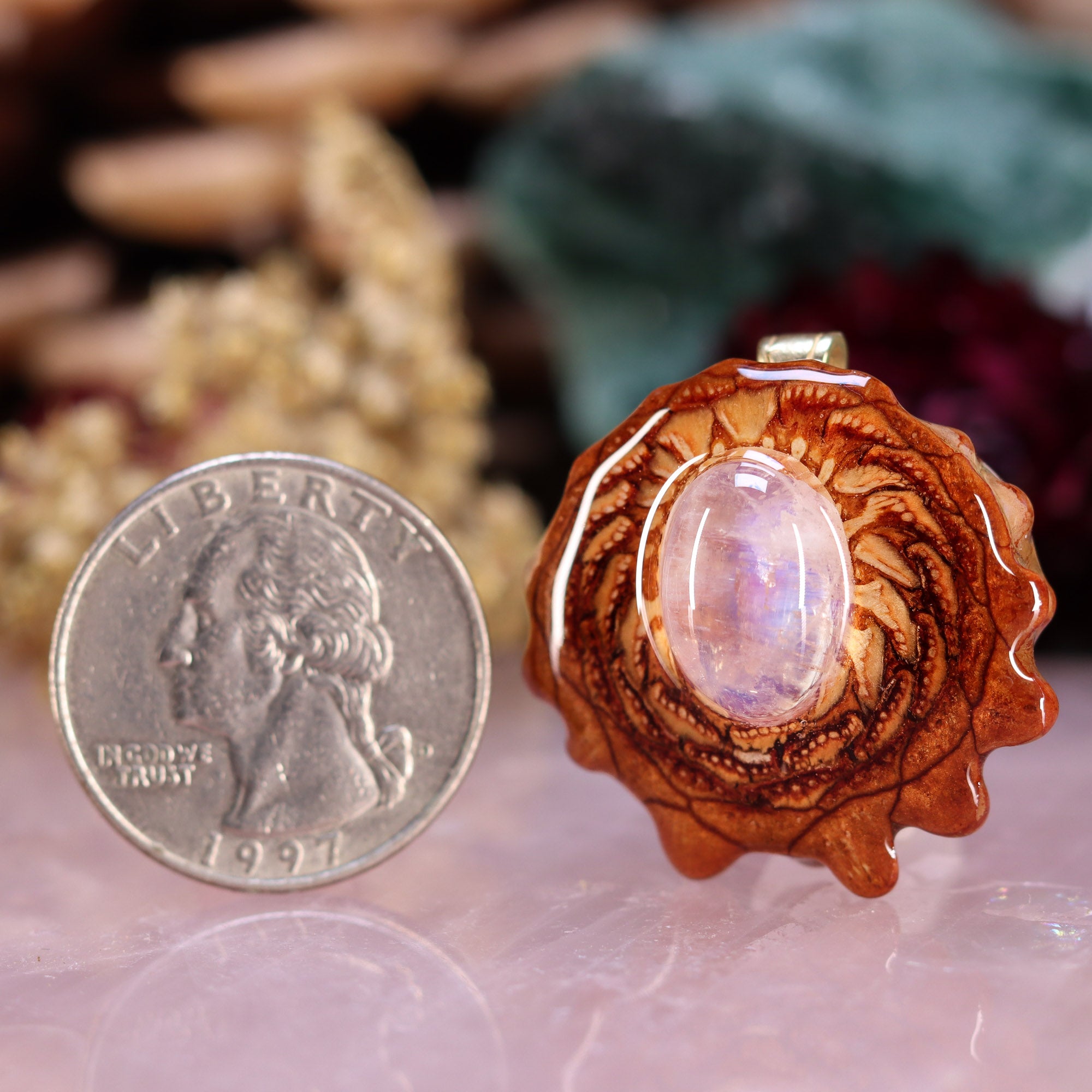 Every pinecone pendant is an elegant gift from Mother Nature -- unveiling the ornate Sacred Geometry hidden at the center of one of the world's densest Pinecones. Because only one cross-section is taken from the "heart" of each Cone, every pendant is absolutely unique, and truly one-of-a-kind.