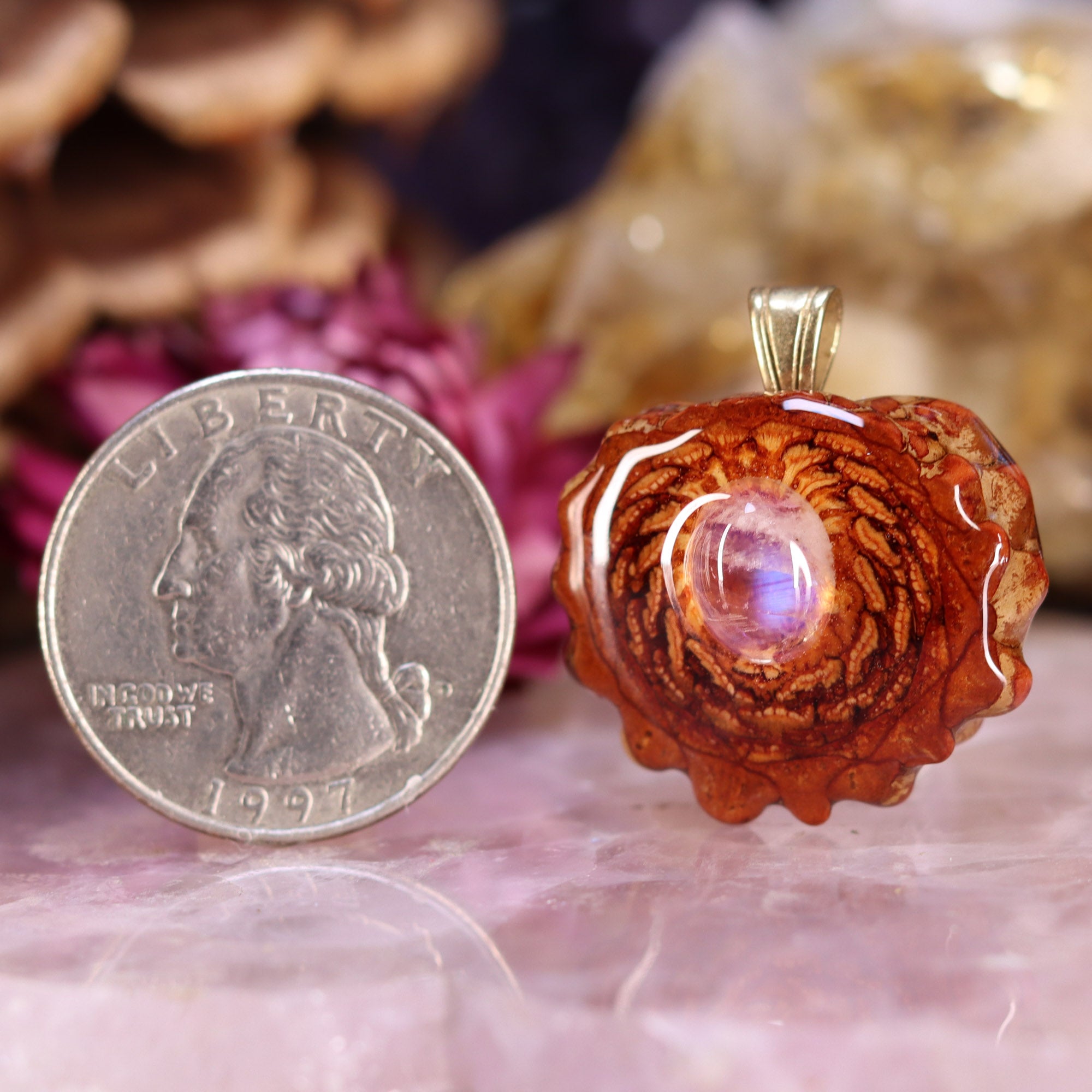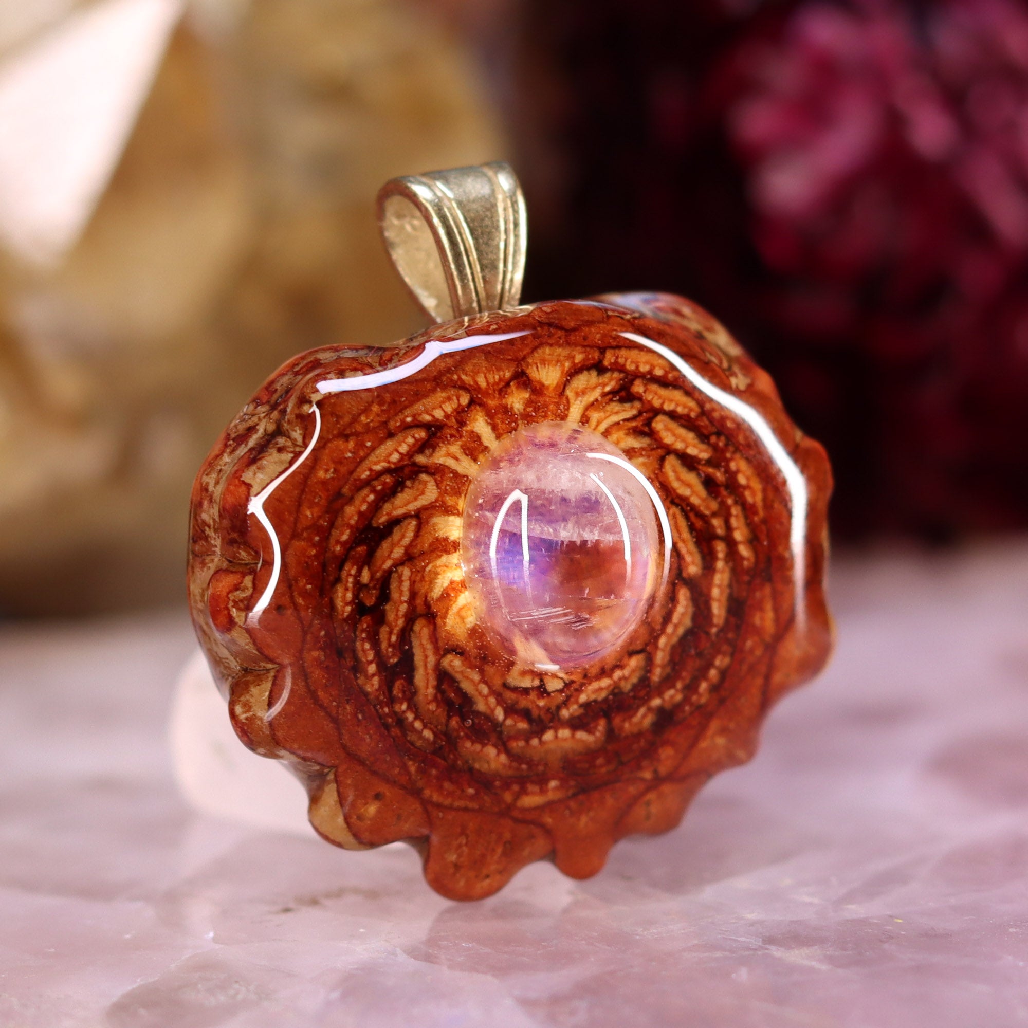 As its name suggests, Moonstone is strongly connected to the archetypal feminine energies of the moon, intuition, and empathy. It helps reconnect with the softness and wisdom of the great mother if one gets caught up in stress, fixation, or aggression. It is recognized as a powerful tool to make conscious the unconscious, and traditionally has been worn as a pendant to encourage the fruition of one's psychic gifts, as well as to facilitate lucid dreaming.