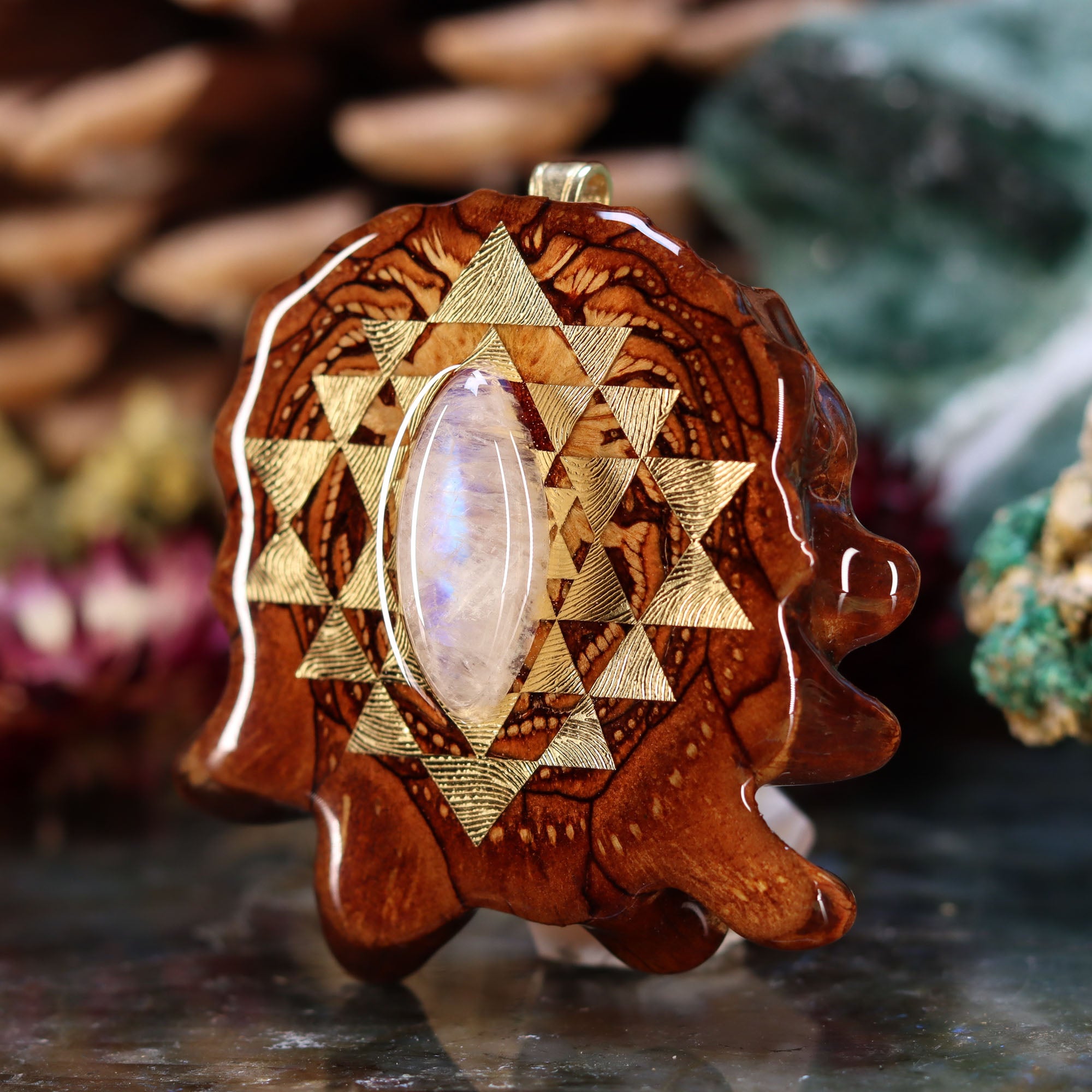 Every pinecone pendant is an elegant gift from Mother Nature -- unveiling the ornate Sacred Geometry hidden at the center of one of the world's densest Pinecones. Because only one cross-section is taken from the "heart" of each Cone, every pendant is absolutely unique, and truly one-of-a-kind.
