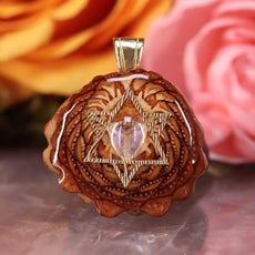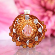 Every pinecone pendant is an elegant gift from Mother Nature -- unveiling the ornate Sacred Geometry hidden at the center of one of the world's densest Pinecones. Because only one cross-section is taken from the "heart" of each Cone, every pendant is absolutely unique, and truly one-of-a-kind.