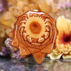 Every pinecone pendant is an elegant gift from Mother Nature -- unveiling the ornate Sacred Geometry hidden at the center of one of the world's densest Pinecones. Because only one cross-section is taken from the "heart" of each Cone, every pendant is absolutely unique, and truly one-of-a-kind.