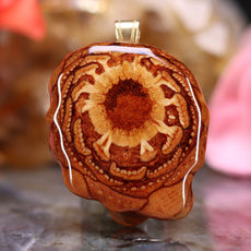 Every pinecone pendant is an elegant gift from Mother Nature -- unveiling the ornate Sacred Geometry hidden at the center of one of the world's densest Pinecones. Because only one cross-section is taken from the "heart" of each Cone, every pendant is absolutely unique, and truly one-of-a-kind.