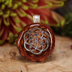 Every pinecone pendant is an elegant gift from Mother Nature -- unveiling the ornate Sacred Geometry hidden at the center of one of the world's densest Pinecones. Because only one cross-section is taken from the "heart" of each Cone, every pendant is absolutely unique, and truly one-of-a-kind.