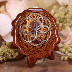 Every pinecone pendant is an elegant gift from Mother Nature -- unveiling the ornate Sacred Geometry hidden at the center of one of the world's densest Pinecones. Because only one cross-section is taken from the "heart" of each Cone, every pendant is absolutely unique, and truly one-of-a-kind.