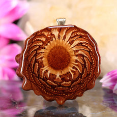 Every pinecone pendant is an elegant gift from Mother Nature -- unveiling the ornate Sacred Geometry hidden at the center of one of the world's densest Pinecones. Because only one cross-section is taken from the "heart" of each Cone, every pendant is absolutely unique, and truly one-of-a-kind.