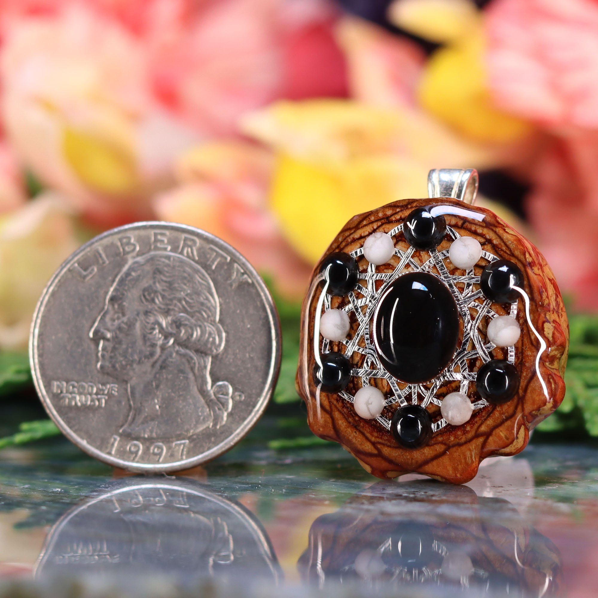 Every pinecone pendant is an elegant gift from Mother Nature -- unveiling the ornate Sacred Geometry hidden at the center of one of the world's densest Pinecones. Because only one cross-section is taken from the "heart" of each Cone, every pendant is absolutely unique, and truly one-of-a-kind.