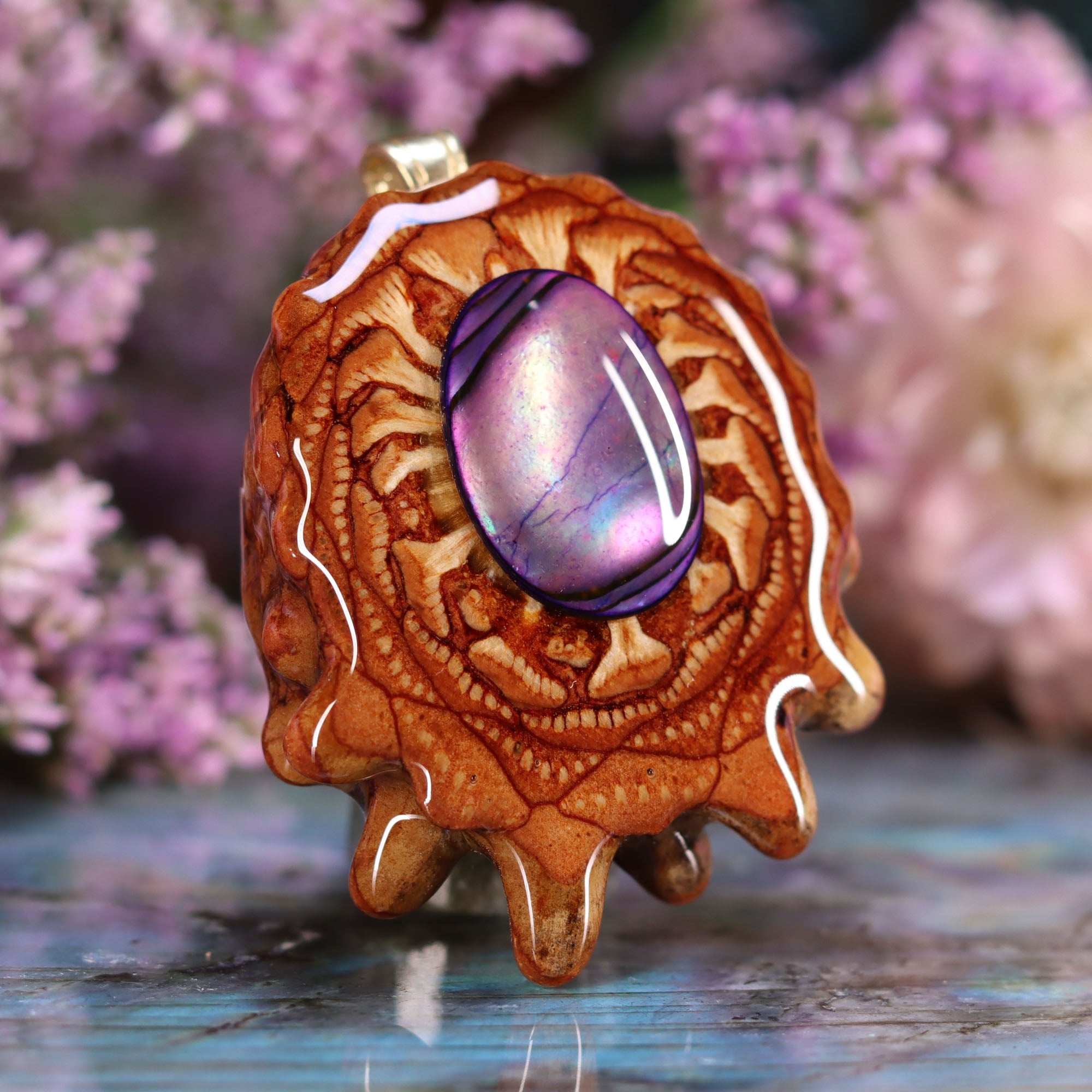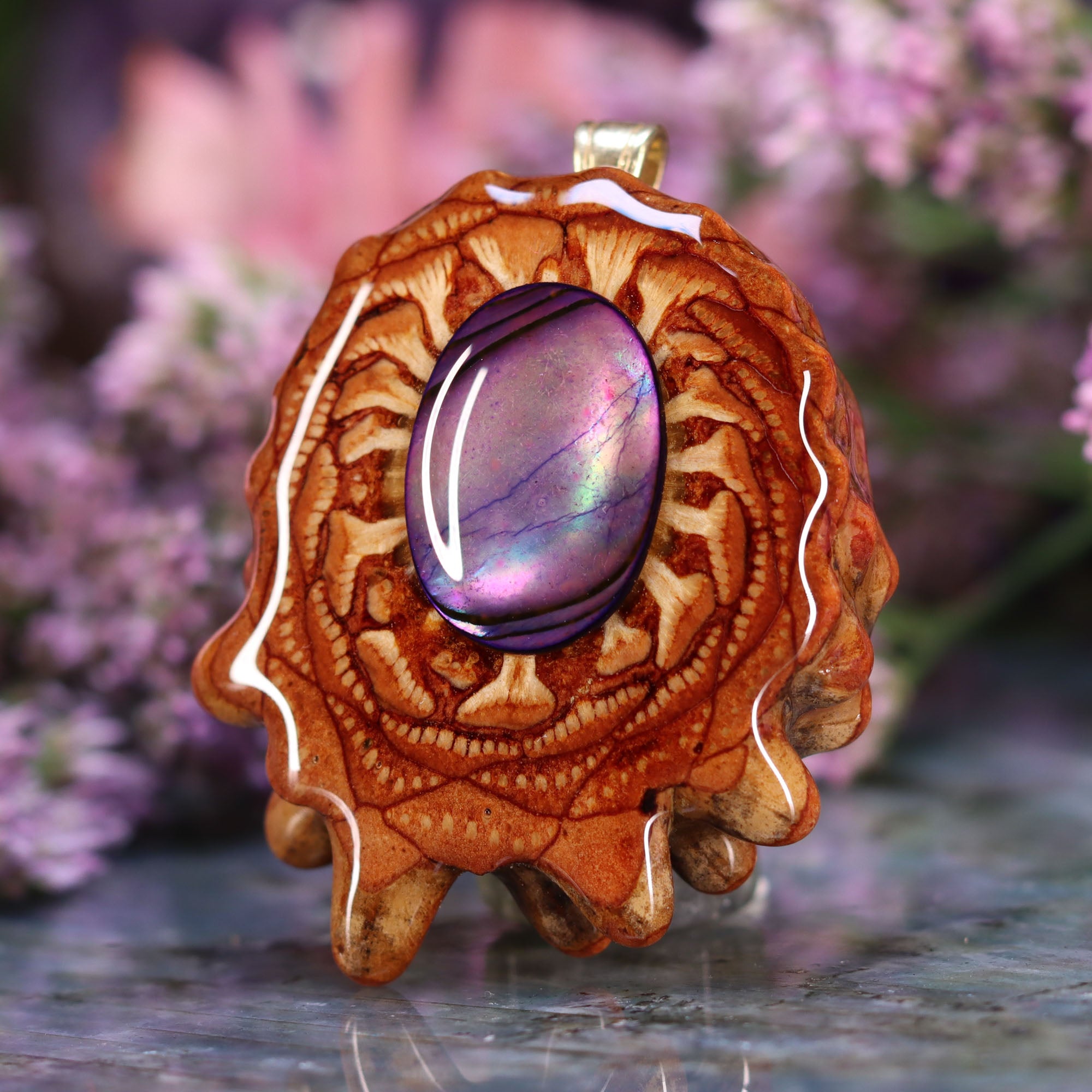 Every pinecone pendant is an elegant gift from Mother Nature -- unveiling the ornate Sacred Geometry hidden at the center of one of the world's densest Pinecones. Because only one cross-section is taken from the "heart" of each Cone, every pendant is absolutely unique, and truly one-of-a-kind.