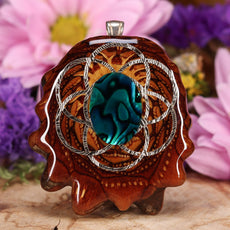 Every pinecone pendant is an elegant gift from Mother Nature -- unveiling the ornate Sacred Geometry hidden at the center of one of the world's densest Pinecones. Because only one cross-section is taken from the "heart" of each Cone, every pendant is absolutely unique, and truly one-of-a-kind.