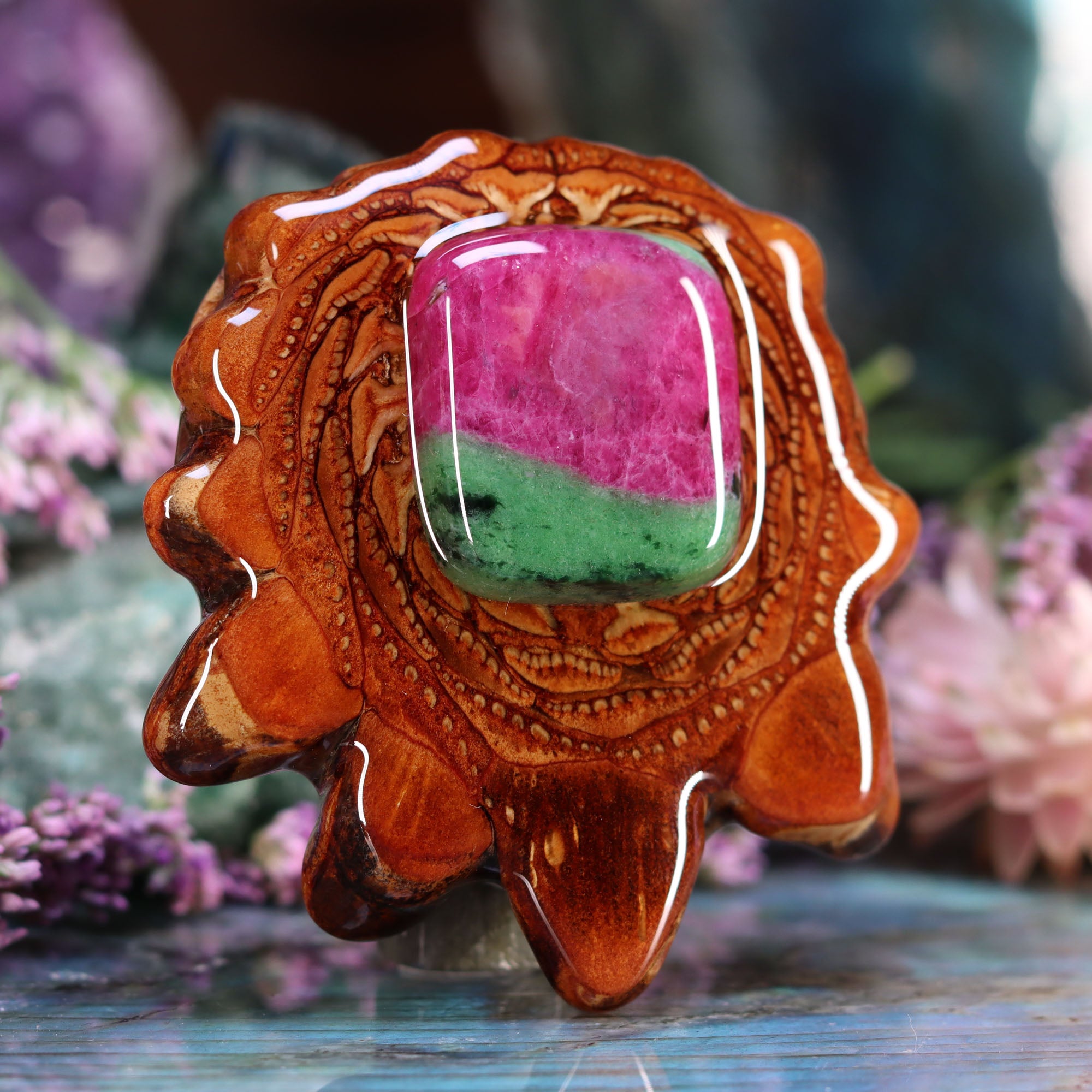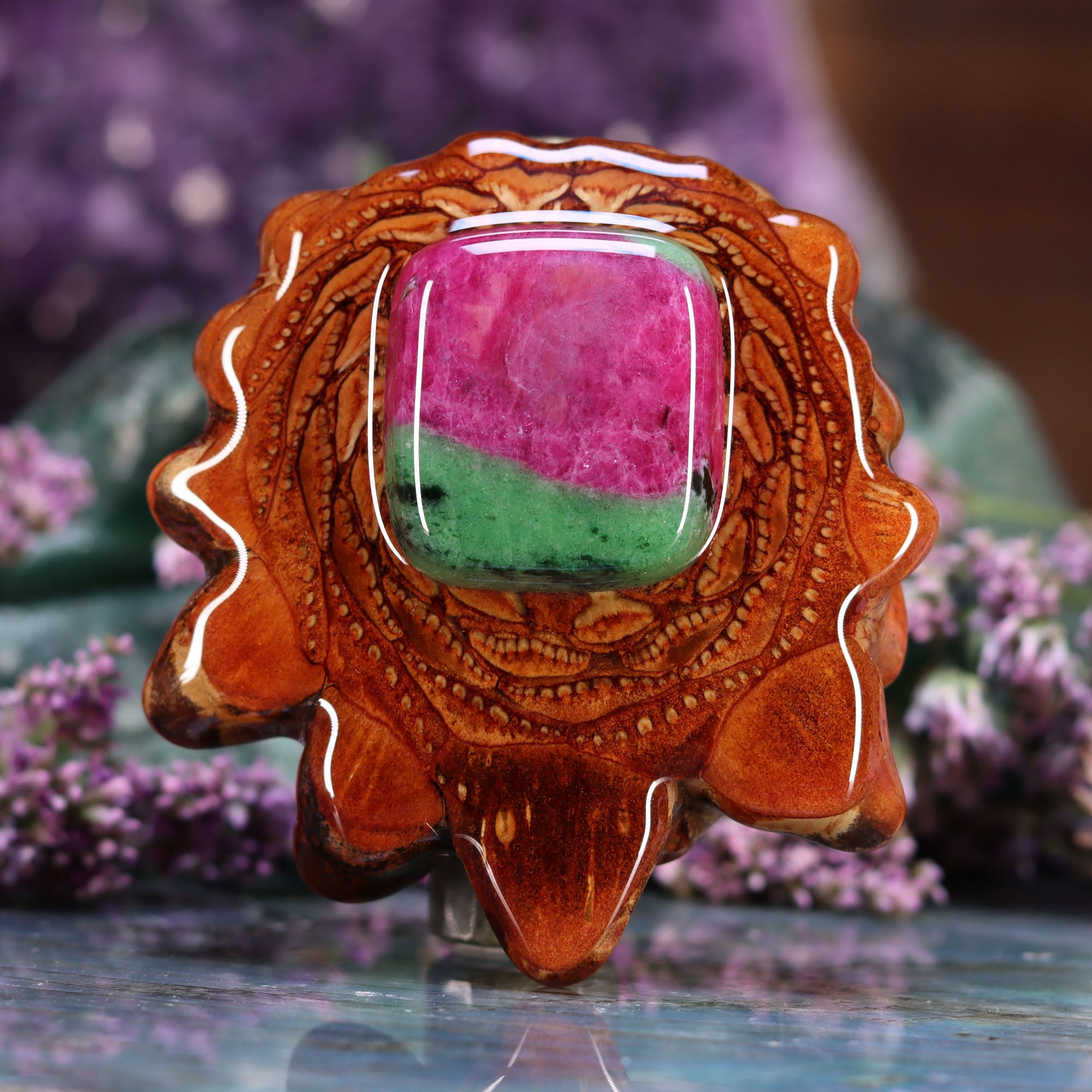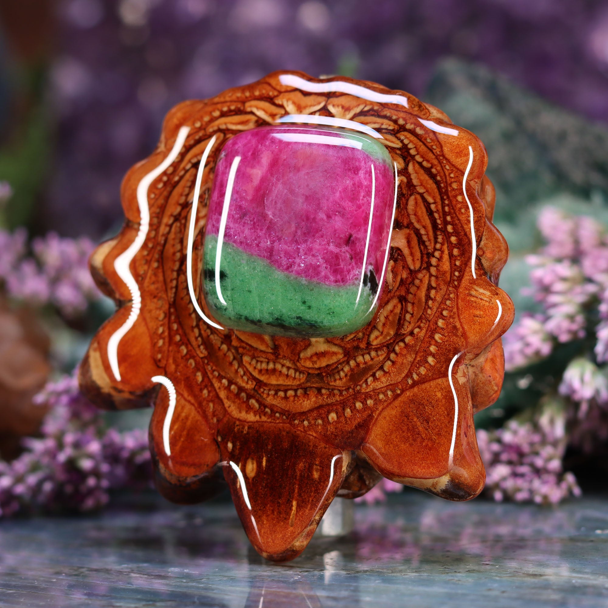 Ruby in Zoisite brings together the energies of Ruby and Zoisite, creating a synergy that is more than the sum of its parts. This stone offers the heart-opening and passion of Ruby combined with the transmutative power of Zoisite. Together they are said to amplify one's energy field, and is often used for personal empowerment and physical vitality.