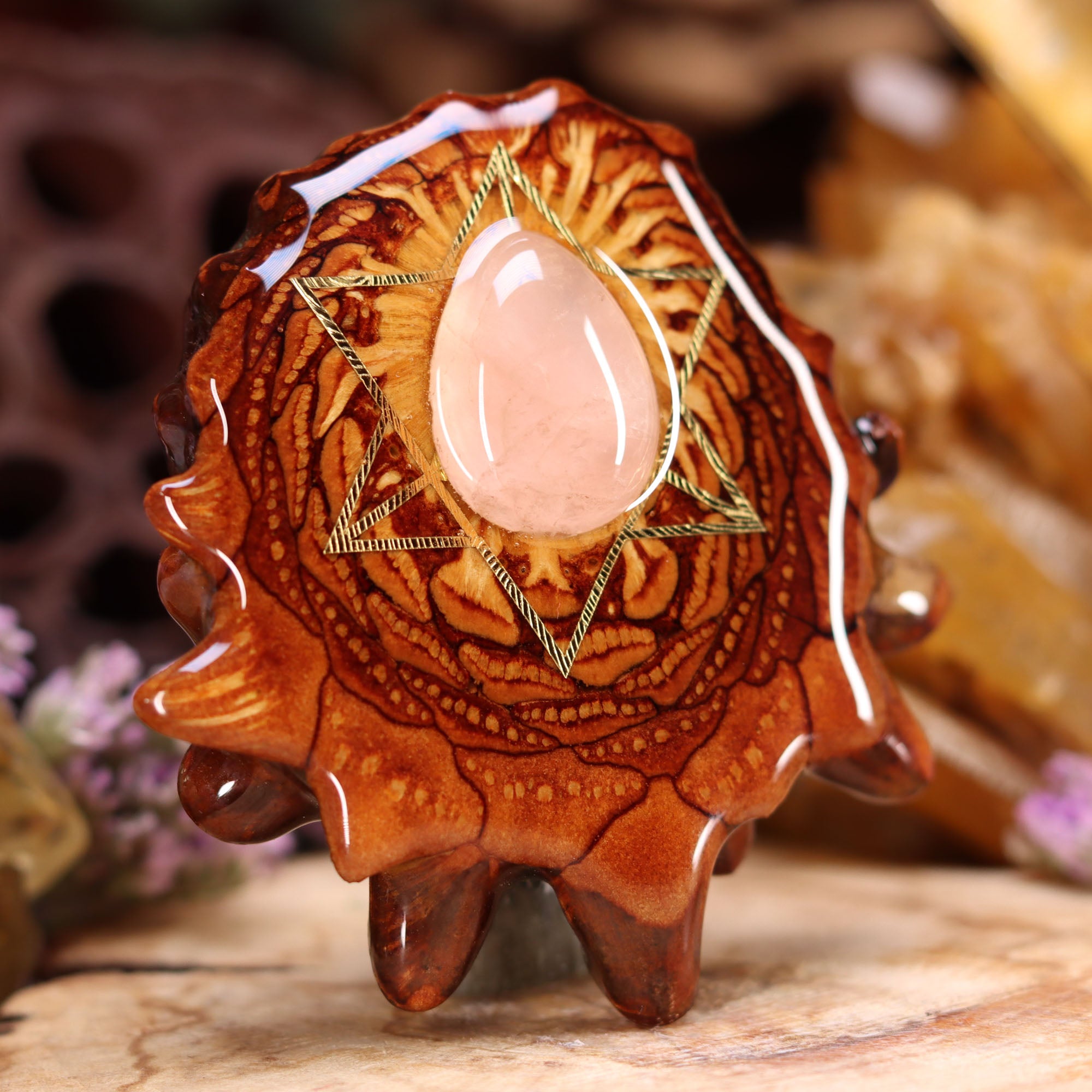 This Pinecone has been anointed with our "Merkaba" emblem, cast in 24k Gold. Merkaba - "Mer" meaning Light, "Ka" meaning Spirit, and "Ba" meaning Body - is a powerful icon historically known as the "Vehicle of Ascension". The Merkaba opens the mind to increased awareness and promotes deep conscious interconnection.