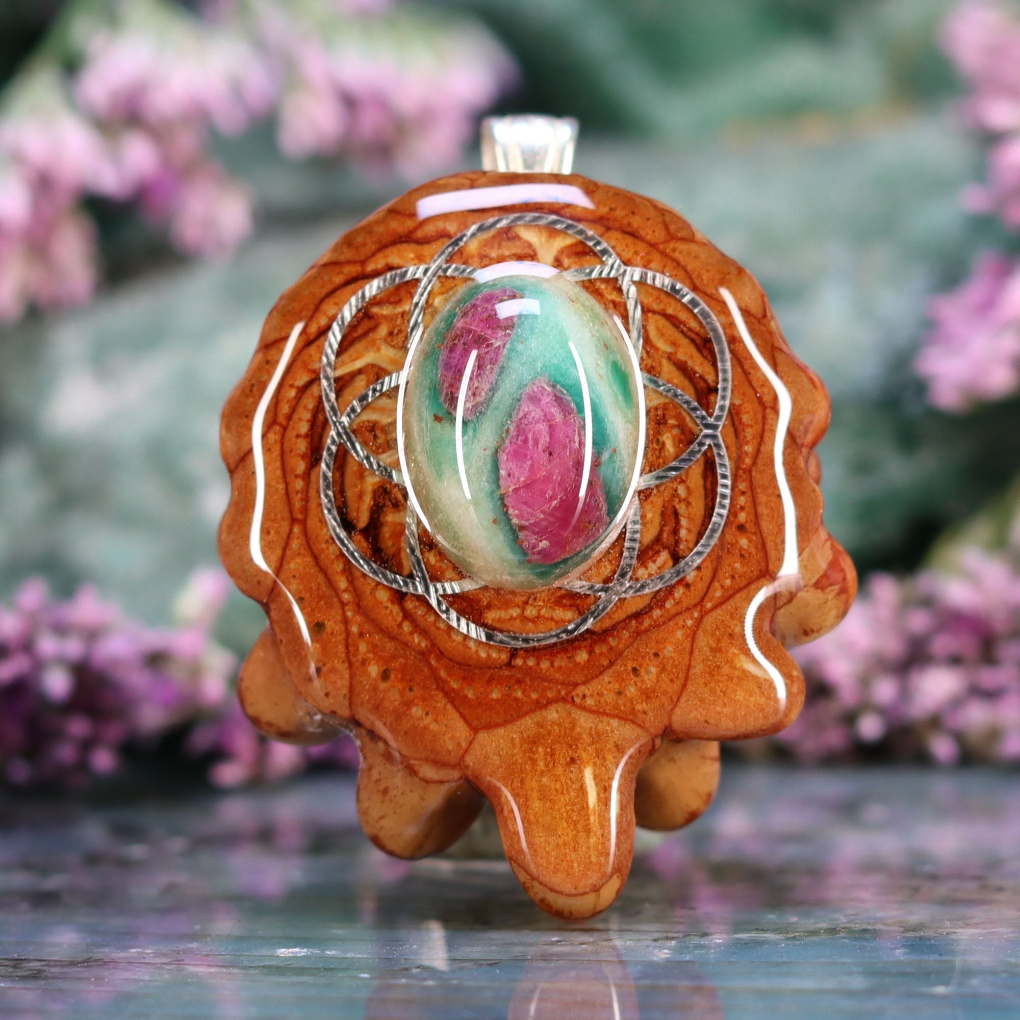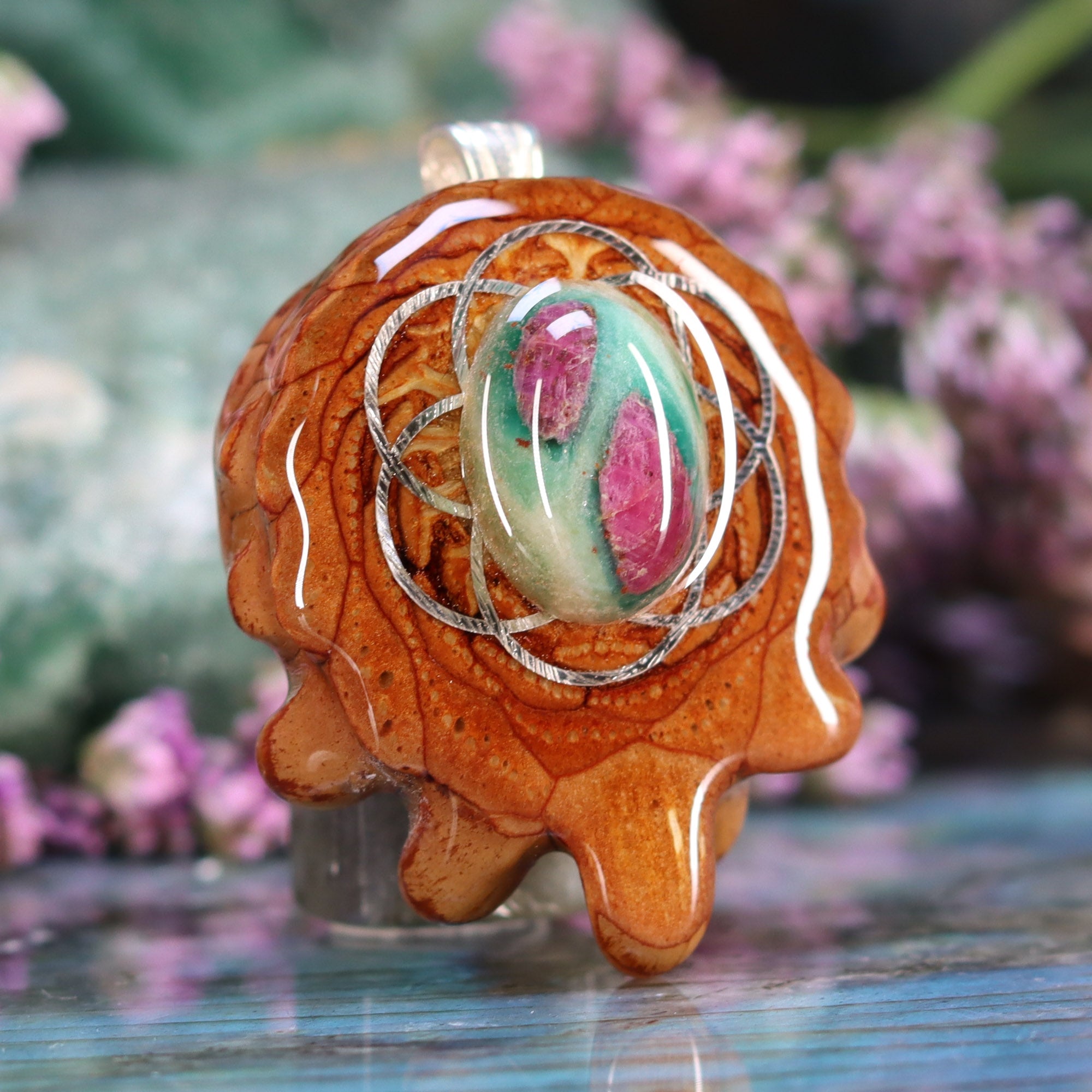 Every pinecone pendant is an elegant gift from Mother Nature -- unveiling the ornate Sacred Geometry hidden at the center of one of the world's densest Pinecones. Because only one cross-section is taken from the "heart" of each Cone, every pendant is absolutely unique, and truly one-of-a-kind.