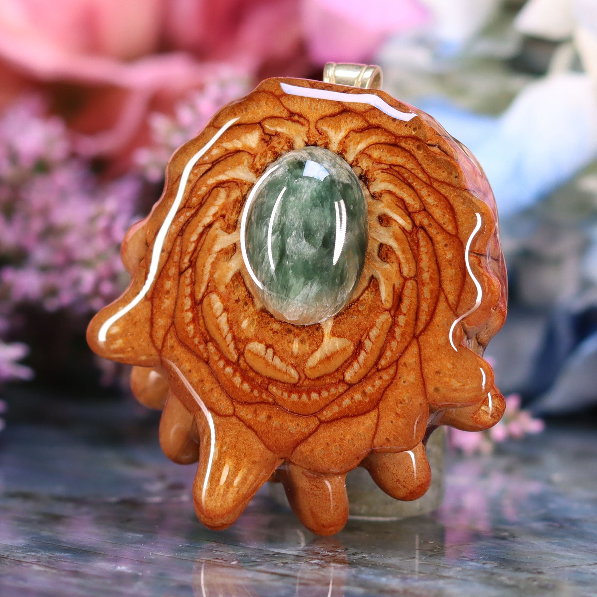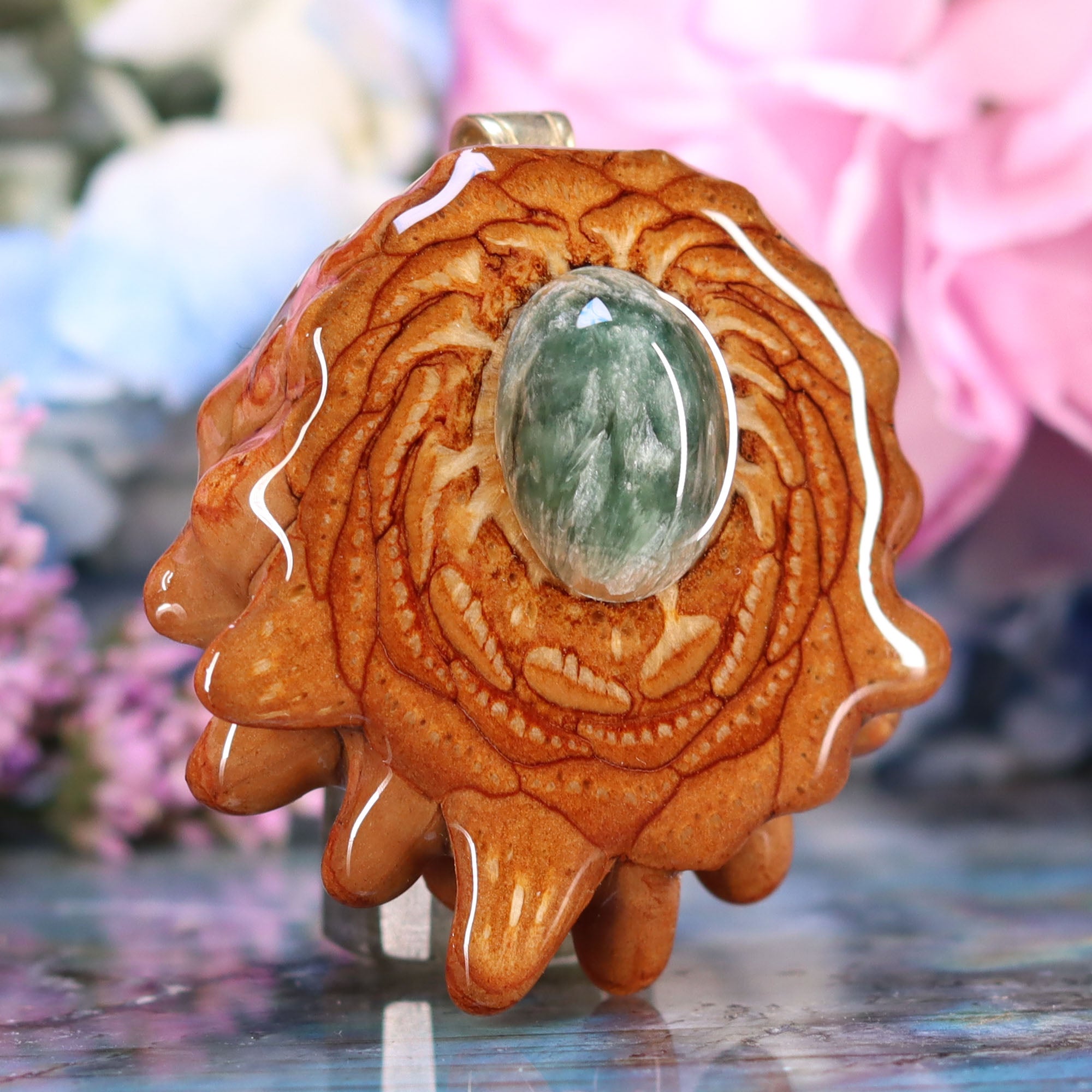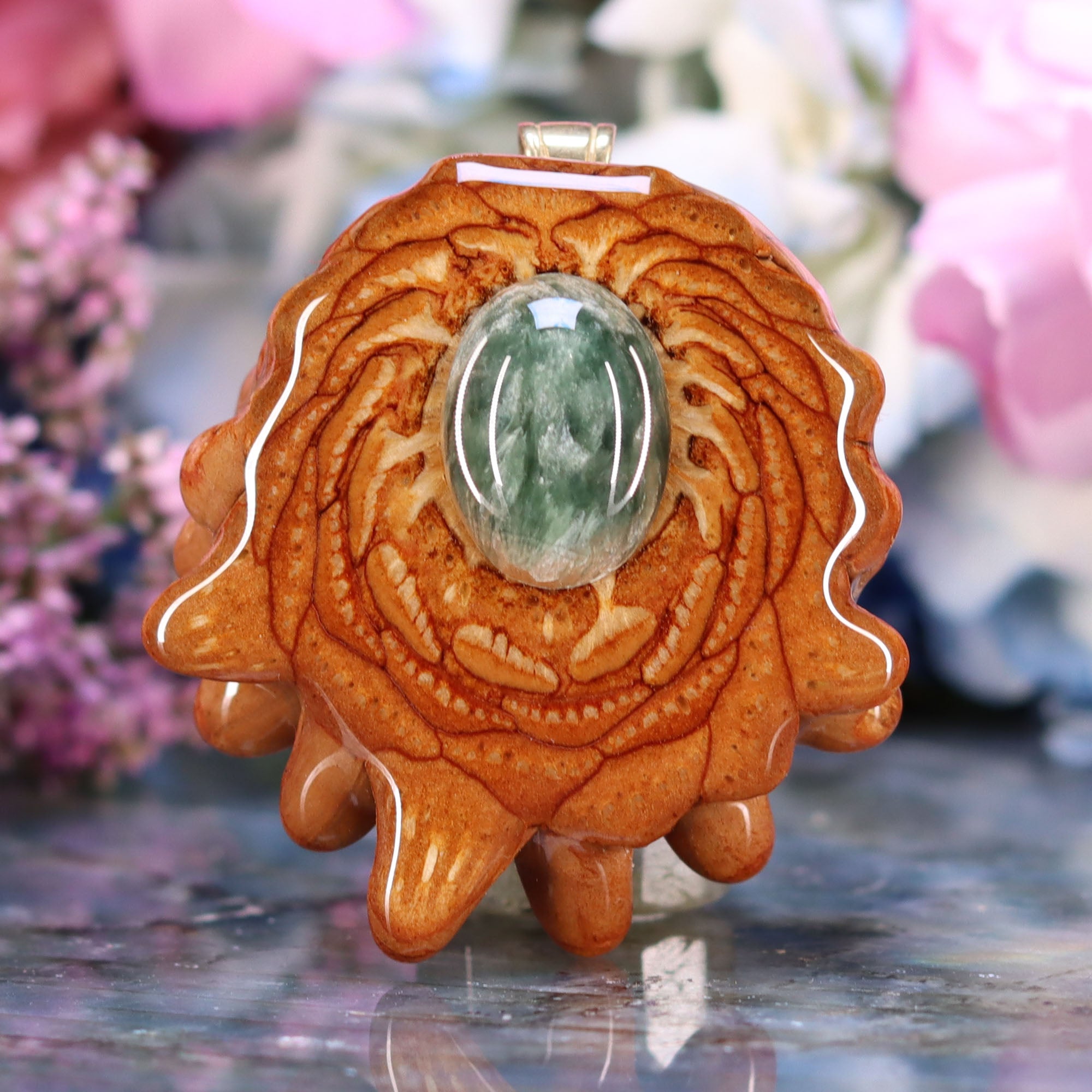 Every pinecone pendant is an elegant gift from Mother Nature -- unveiling the ornate Sacred Geometry hidden at the center of one of the world's densest Pinecones. Because only one cross-section is taken from the "heart" of each Cone, every pendant is absolutely unique, and truly one-of-a-kind.