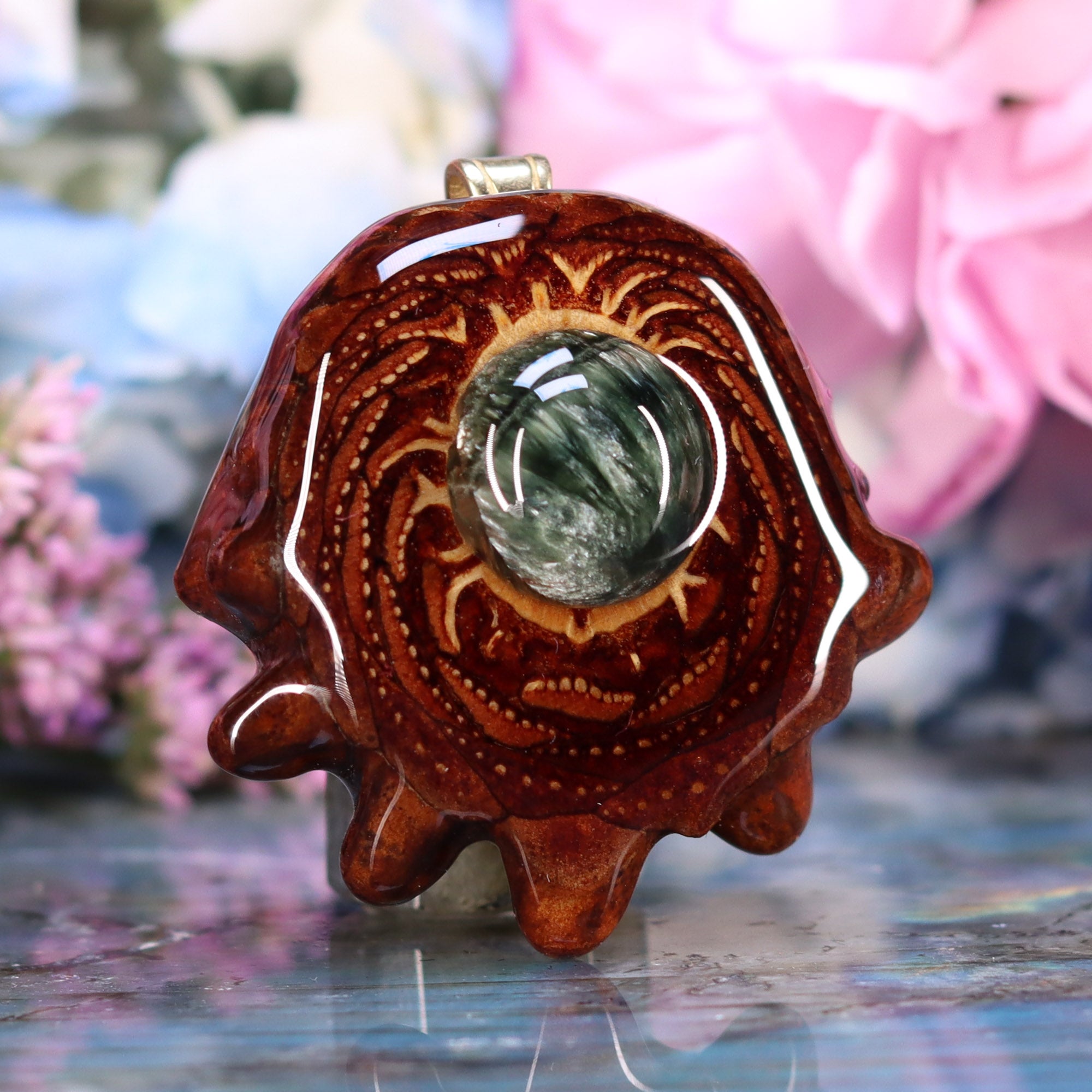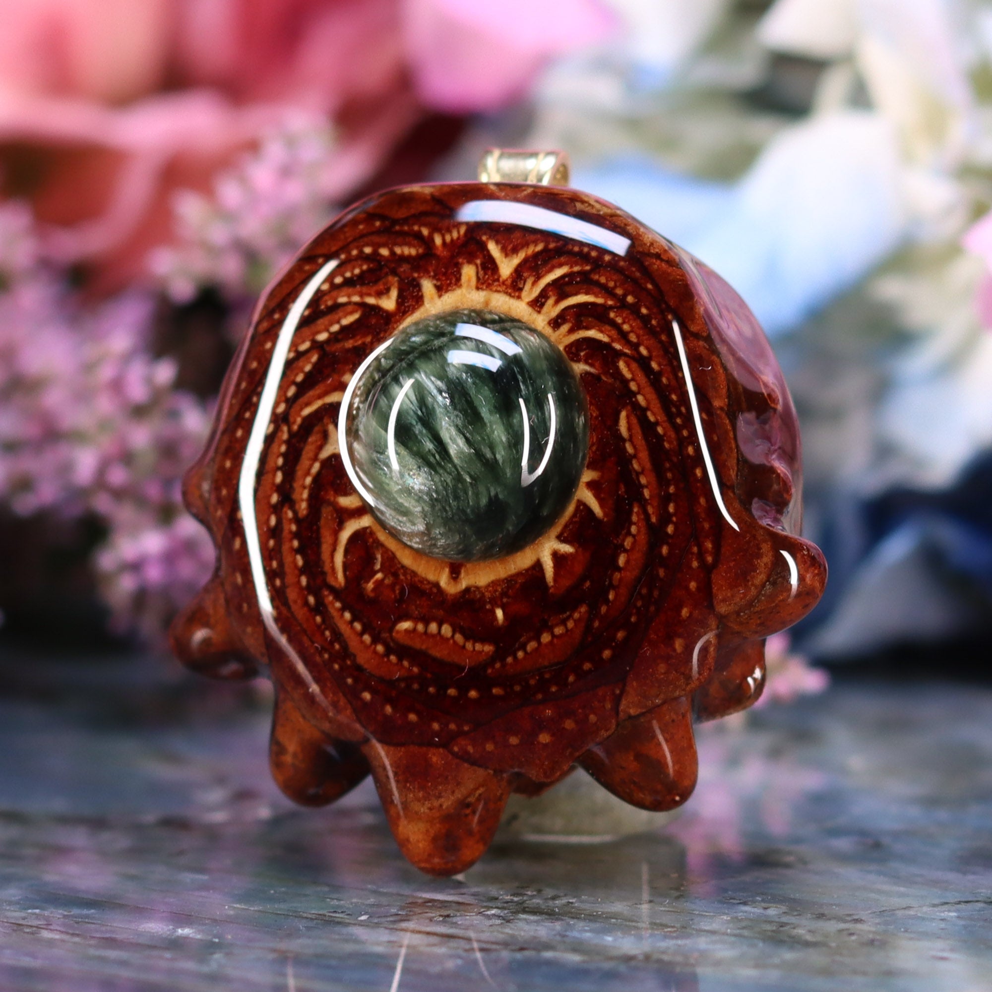 Every pinecone pendant is an elegant gift from Mother Nature -- unveiling the ornate Sacred Geometry hidden at the center of one of the world's densest Pinecones. Because only one cross-section is taken from the "heart" of each Cone, every pendant is absolutely unique, and truly one-of-a-kind.