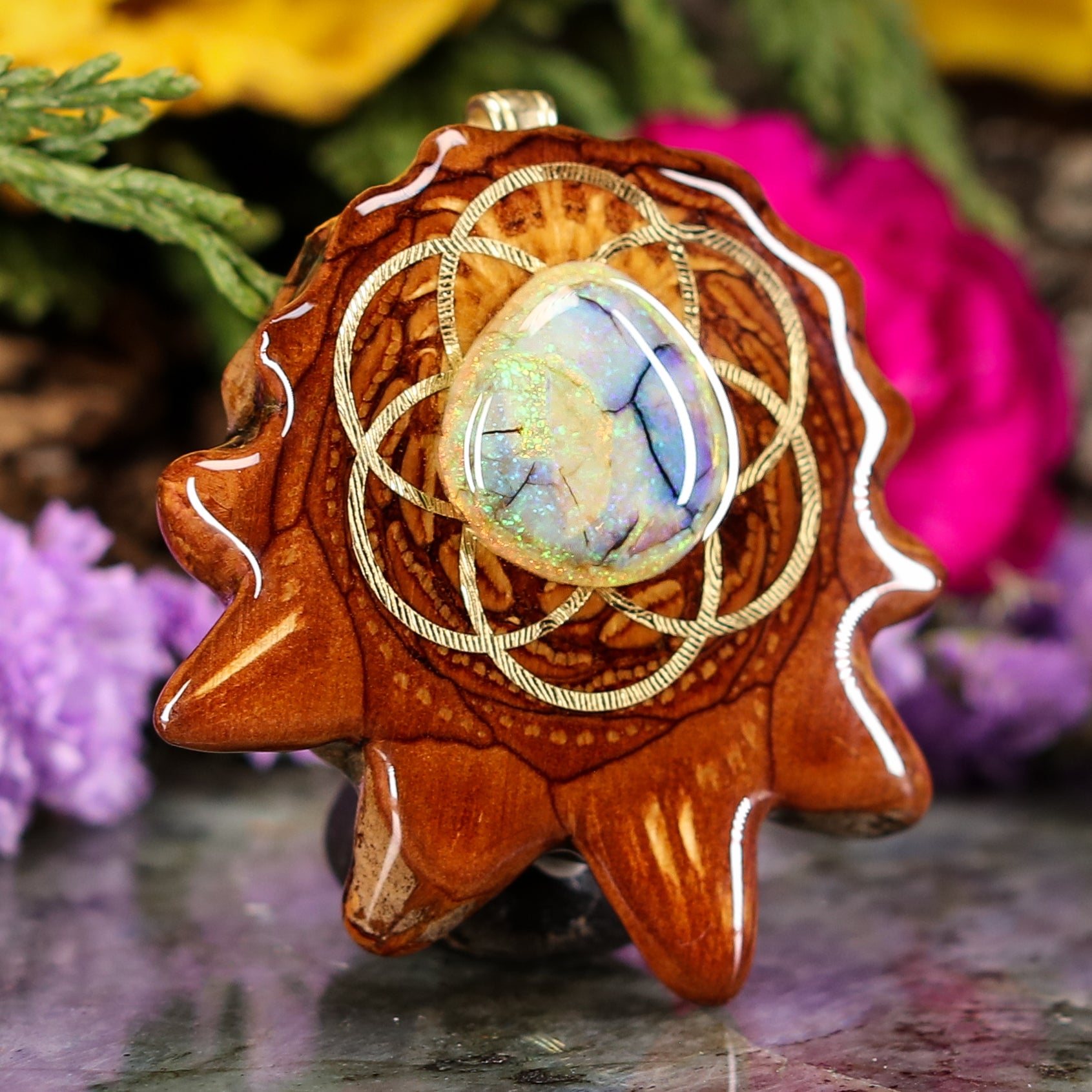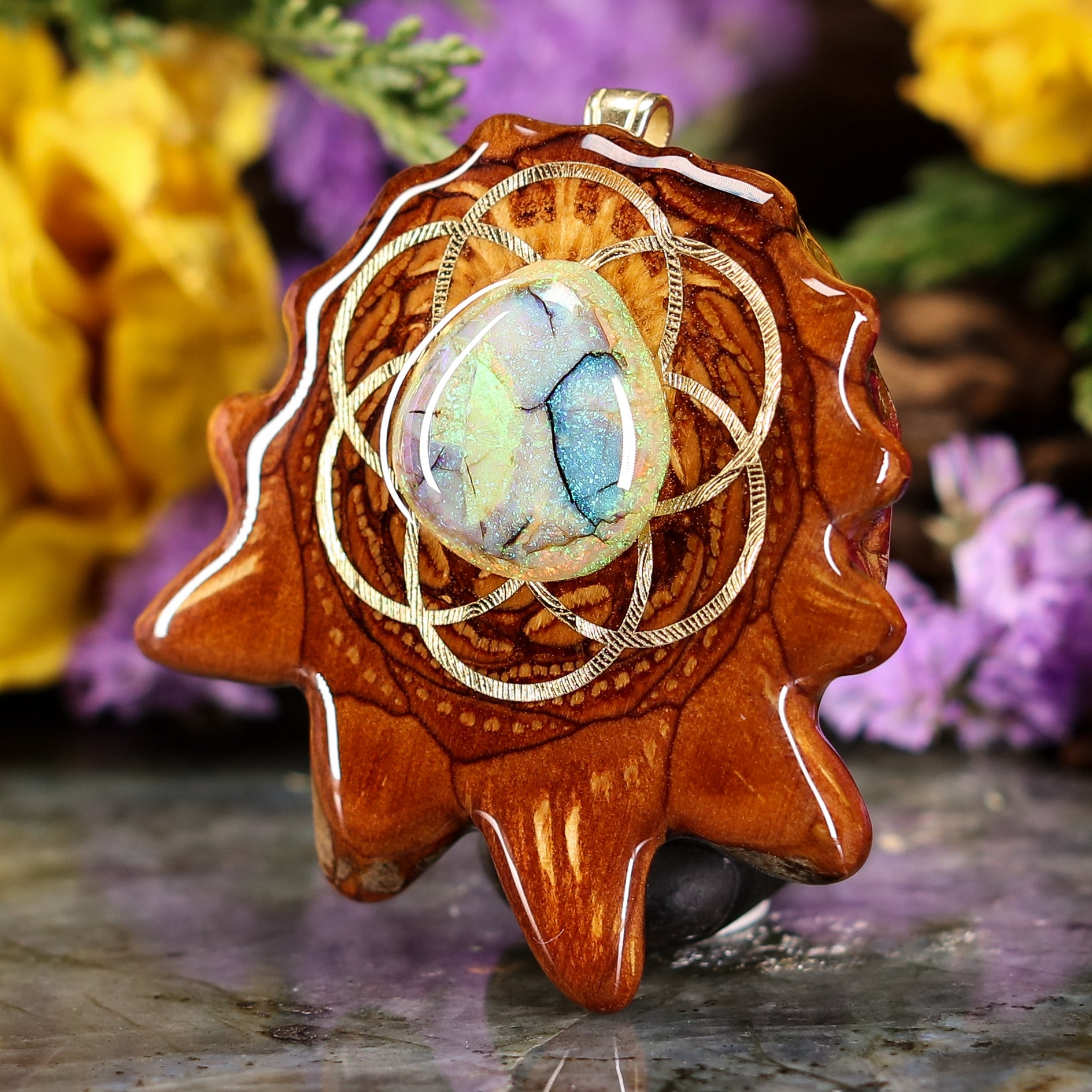 Every pinecone pendant is an elegant gift from Mother Nature -- unveiling the ornate Sacred Geometry hidden at the center of one of the world's densest Pinecones. Because only one cross-section is taken from the "heart" of each Cone, every pendant is absolutely unique, and truly one-of-a-kind.
