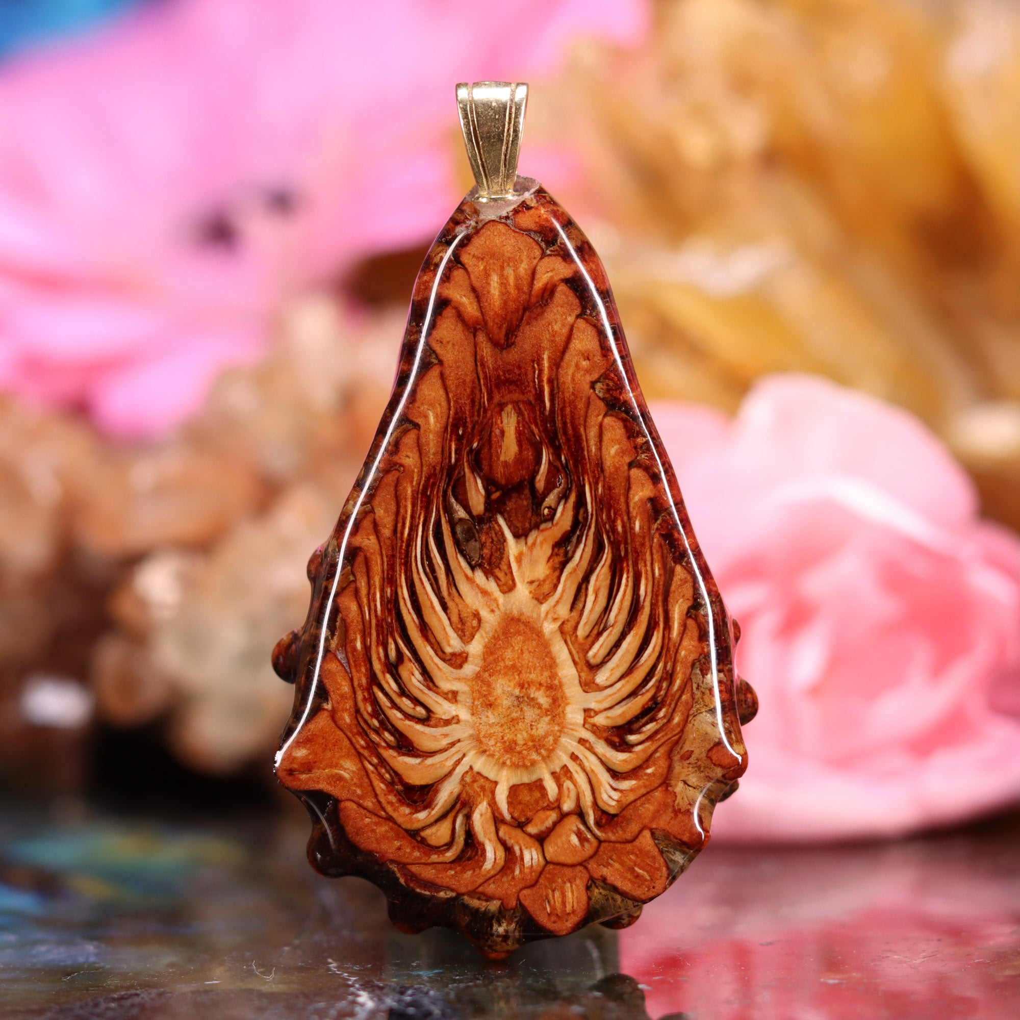 Every pinecone pendant is an elegant gift from Mother Nature -- unveiling the ornate Sacred Geometry hidden at the center of one of the world's densest Pinecones. Because only one cross-section is taken from the "heart" of each Cone, every pendant is absolutely unique, and truly one-of-a-kind.