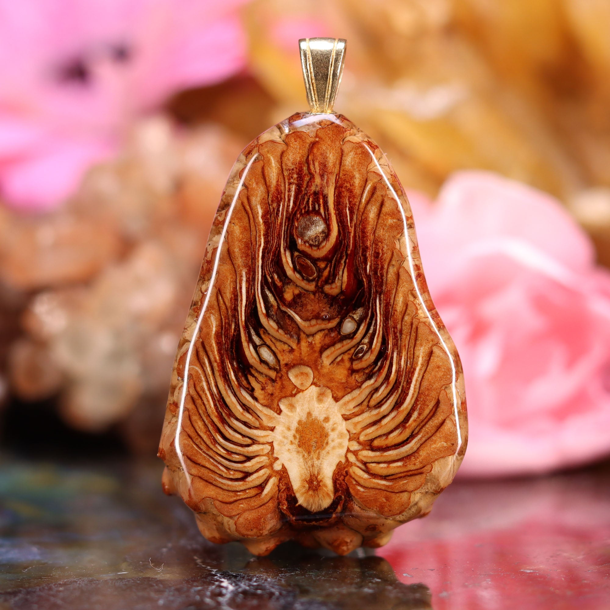 Every pinecone pendant is an elegant gift from Mother Nature -- unveiling the ornate Sacred Geometry hidden at the center of one of the world's densest Pinecones. Because only one cross-section is taken from the "heart" of each Cone, every pendant is absolutely unique, and truly one-of-a-kind.