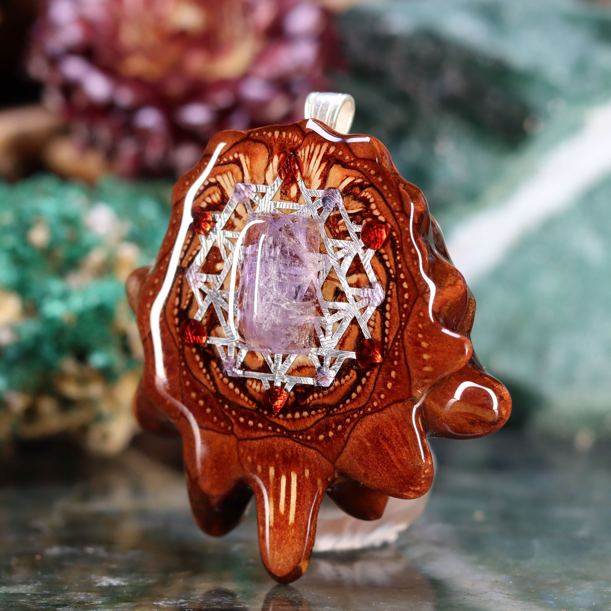 Every pinecone pendant is an elegant gift from Mother Nature -- unveiling the ornate Sacred Geometry hidden at the center of one of the world's densest Pinecones. Because only one cross-section is taken from the "heart" of each Cone, every pendant is absolutely unique, and truly one-of-a-kind.