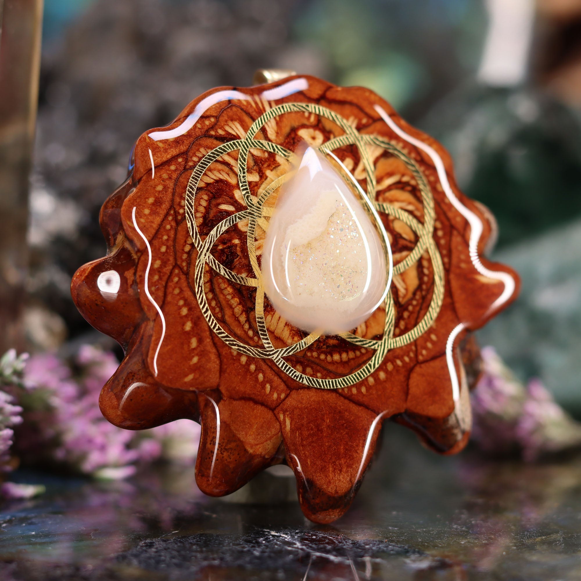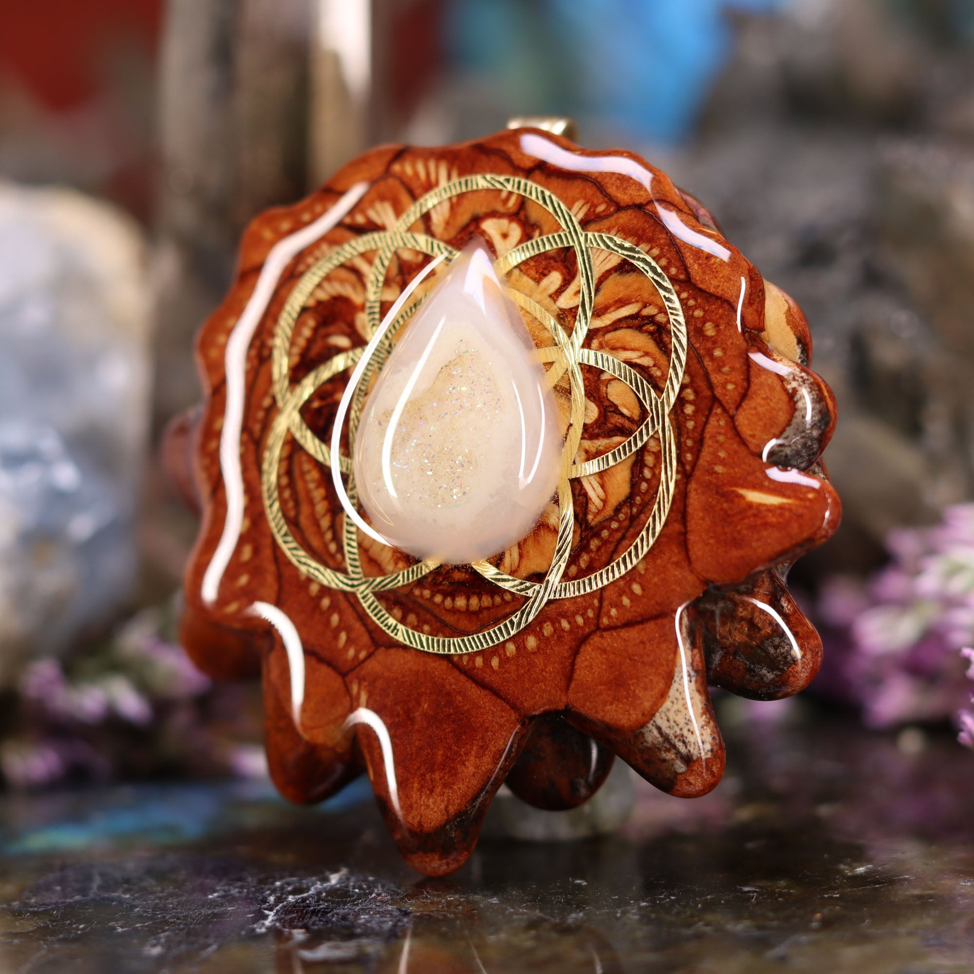 Every pinecone pendant is an elegant gift from Mother Nature -- unveiling the ornate Sacred Geometry hidden at the center of one of the world's densest Pinecones. Because only one cross-section is taken from the "heart" of each Cone, every pendant is absolutely unique, and truly one-of-a-kind.