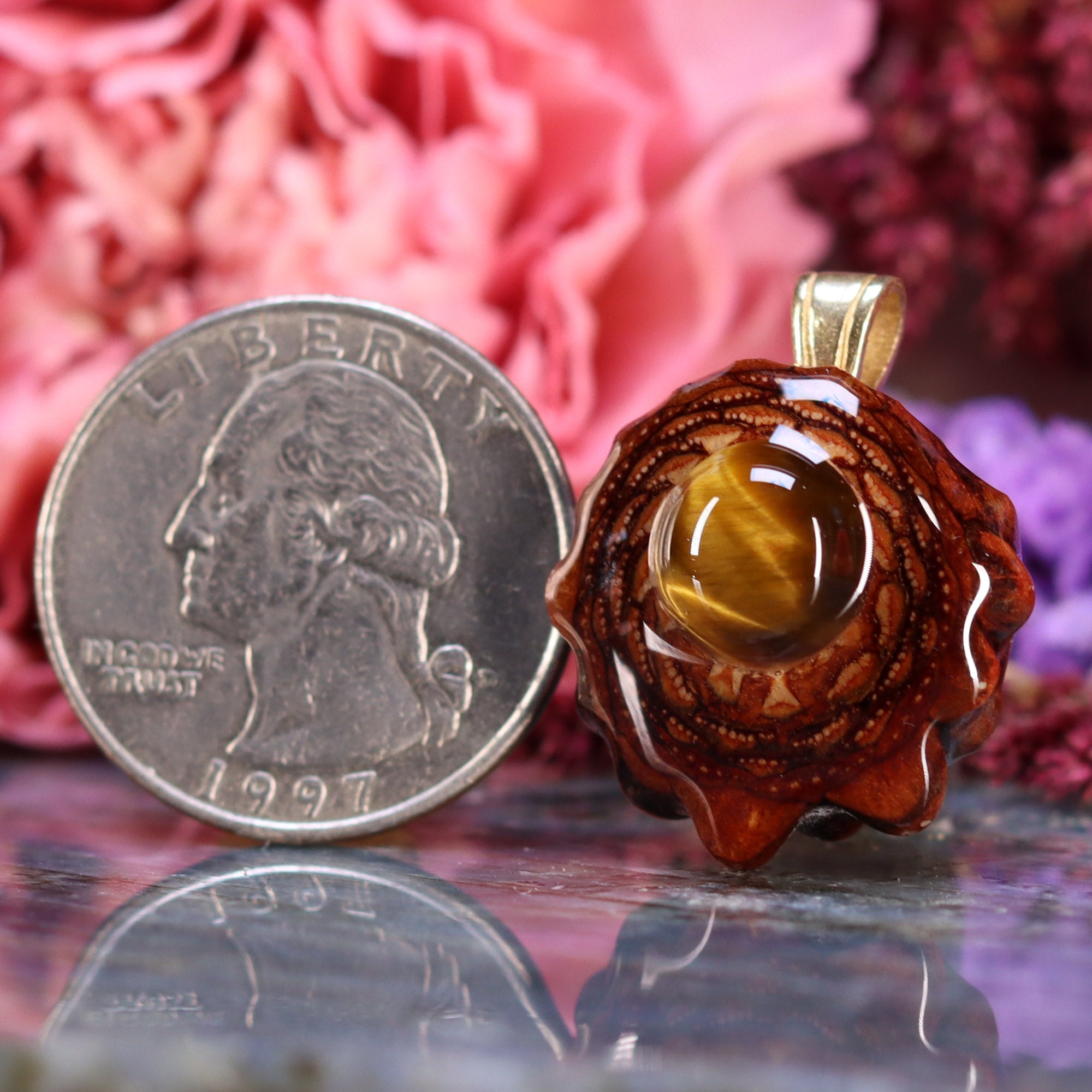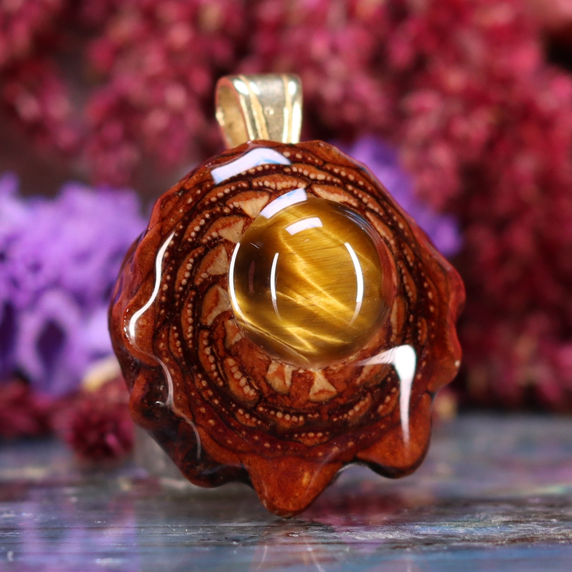 Every pinecone pendant is an elegant gift from Mother Nature -- unveiling the ornate Sacred Geometry hidden at the center of one of the world's densest Pinecones. Because only one cross-section is taken from the "heart" of each Cone, every pendant is absolutely unique, and truly one-of-a-kind.