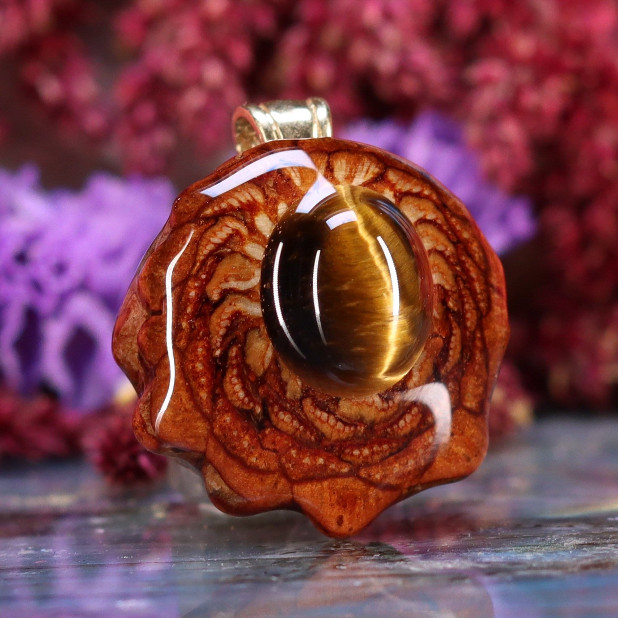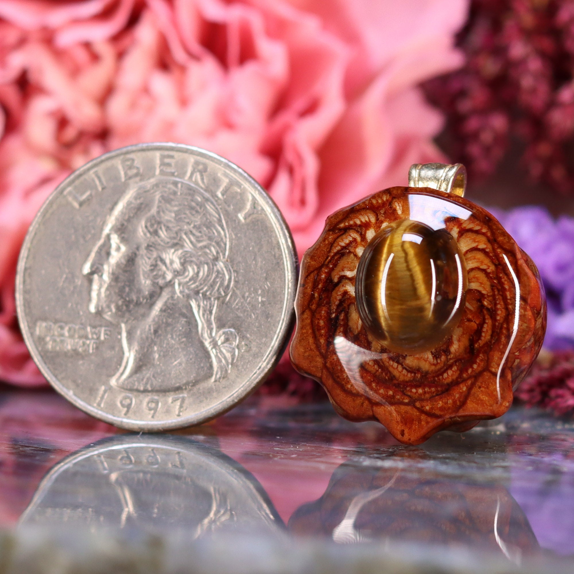 Every pinecone pendant is an elegant gift from Mother Nature -- unveiling the ornate Sacred Geometry hidden at the center of one of the world's densest Pinecones. Because only one cross-section is taken from the "heart" of each Cone, every pendant is absolutely unique, and truly one-of-a-kind.