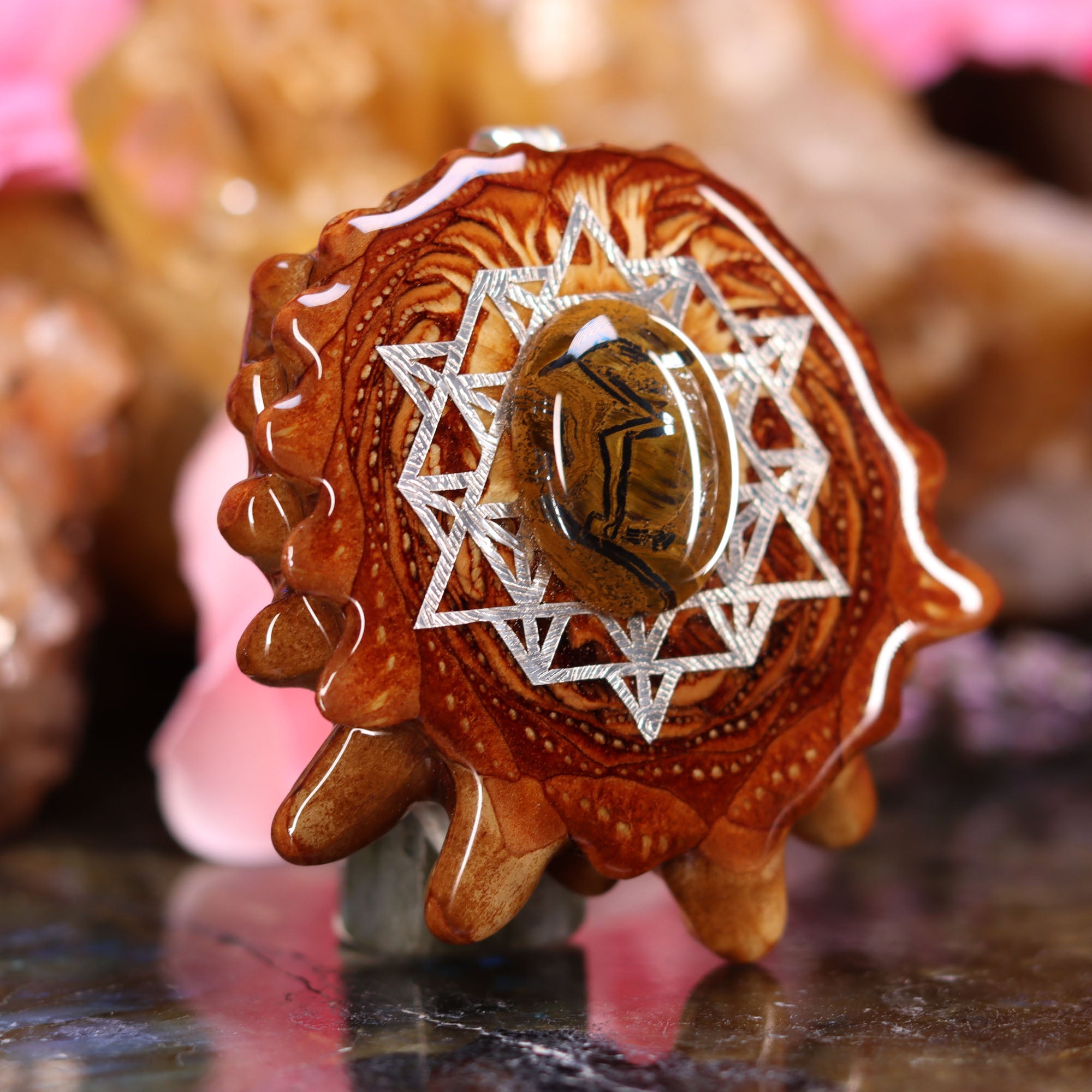 Yellow Tiger's Eye with Silver 64 Star Tetrahedron